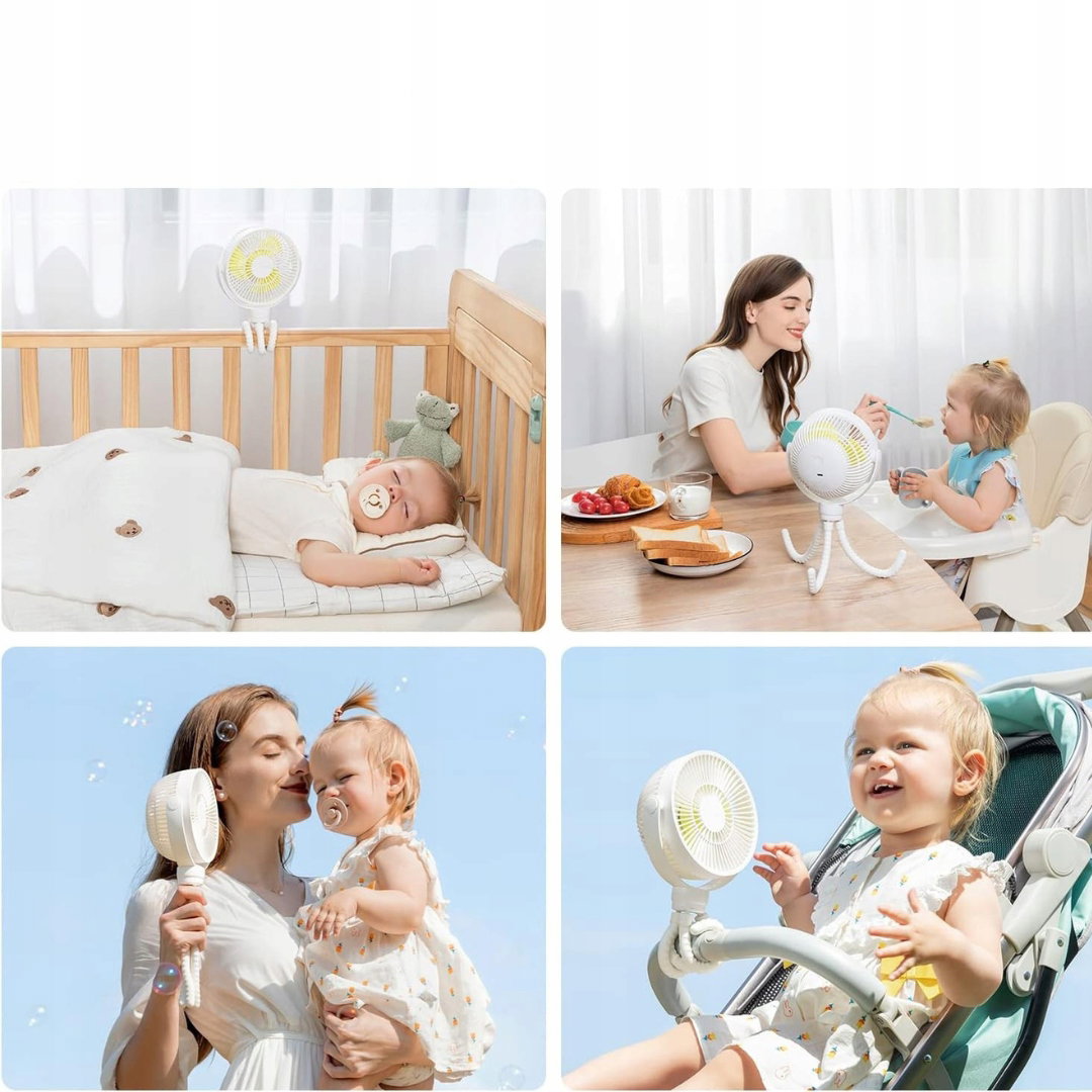 Wentylator jest przenośny i wszechstronny, nadaje się do wózka, fotelika, łóżeczka czy na zewnątrz, a zdejmowana osłona ułatwia czyszczenie. Można go zasilać zarówno z baterii, jak i przez USB, co sprawia, że sprawdza się w różnych sytuacjach.