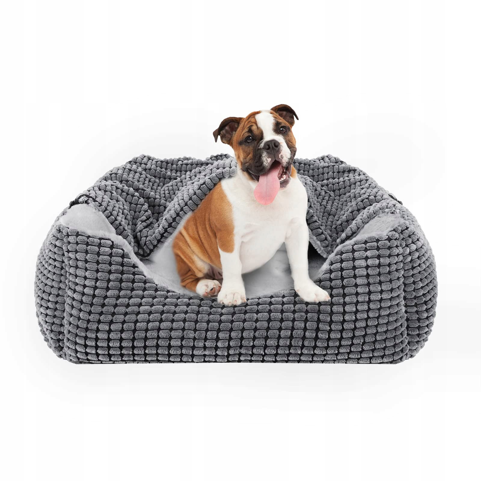 Joejoy pies łóżko średnie psy, łóżko dla psów z kocem, prostokątna sofa dla psów łóżko kota, małe psy Koty łóżko zwierząt domowych, antypoślizgowe łóżka psów, 63.5x53x20cm, pasuje do 14 kg Zwierzęta