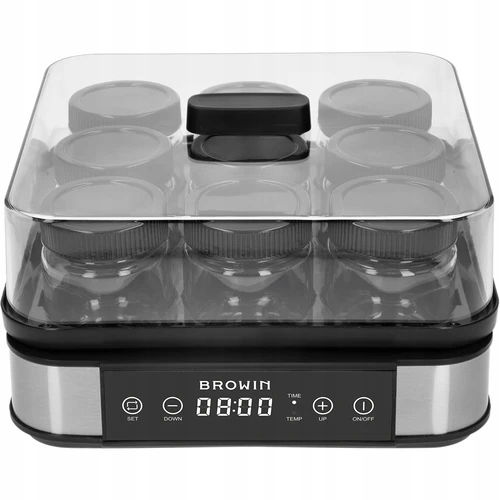 Pełna kontrola - dzięki termostatowi i wyświetlaczowi LED precyzyjnie ustawisz odpowiednią temperaturę, a Twój jogurt będzie zawsze taki, jak lubisz! Solidna porcja jogurtu - 9 szklanych słoików o pojemności 180 ml pozwoli Ci przygotować jogurt od razu na kilka dni. To idealne rozwiązanie dla całej rodziny i oszczędność czasu! Prosta obsługa - intuicyjne sterowanie za pomocą przycisków i automatyczne wyłączanie zapewnią Ci pełną wygodę użytkowania jogurtownicy. Naturalnie i zdrowo - przygotuj jogurt bez zbędnych dodatków, korzystając z ulubionych składników i stwórz swoją własną, niepowtarzalną kompozycję smaków. Ekologicznie - szklane słoiki z zakrętkami typu twist-off to praktyczne i ekonomiczne rozwiązanie – możesz ich używać wielokrotnie. Zapomnij o sklepowych plastikowych opakowaniach, które po zjedzeniu jogurtu zapychają kosz na śmieci, błagając o recycling!