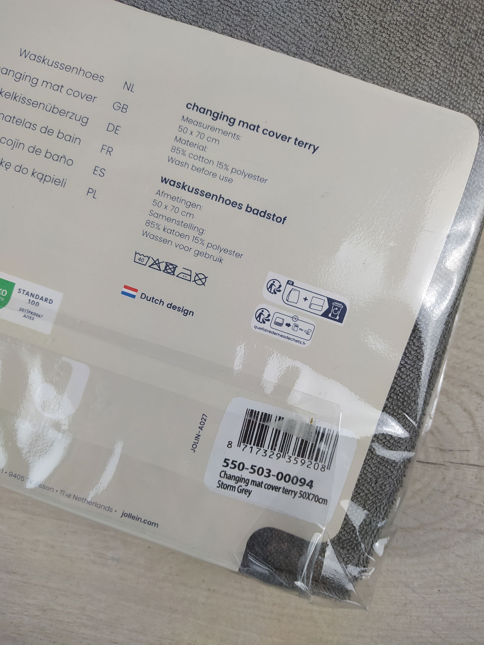 - Zawartość opakowania: 1x pokrowiec na matę do przewijania w kolorze szary burzowy. Materiał: 85% bawełna, 15% poliester