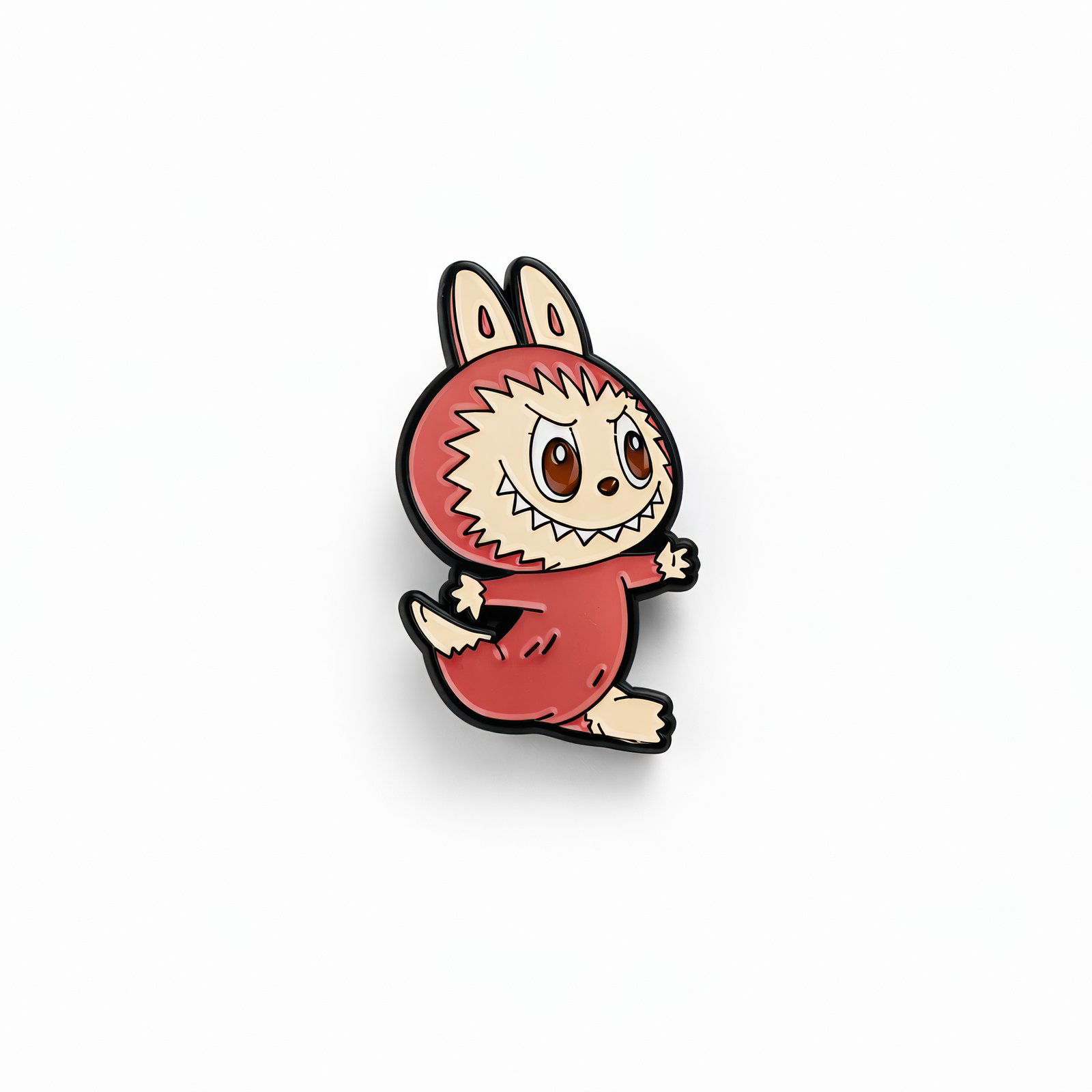 Uroczy, 4-centymetrowy metalowy pin emaliowany z Labubu w zabawnej czerwonej stylizacji, prezentujący jego charakterystyczną szpiczastą fryzurę, uszy królika i wyraziste oczy. Przód wyróżnia się przyjaznym, mrugającym okiem i uzębieniem, a wytrzymała metalowa konstrukcja zapewnia trwałość. Odwracalna tylna strona ma eleganckie, matowe czarne wykończenie z teksturowanym wzorem i solidne metalowe zapięcie ułatwiające przymocowanie do torebek, czapek lub kurtek. Idealny dla fanów kolekcji Labubu, aby dodać kapryszu do codziennych akcesoriów.