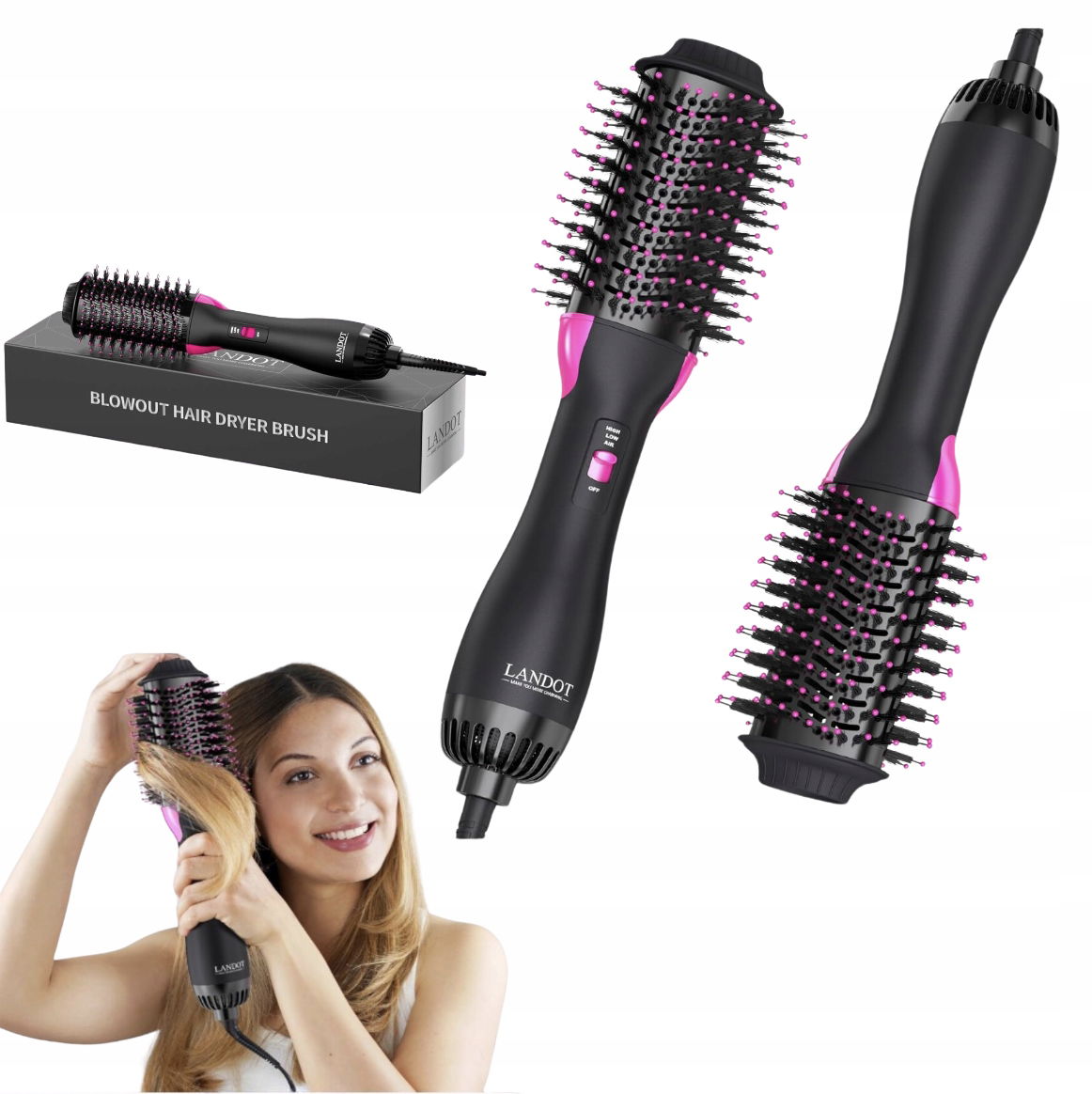 Stylowy czarny design, ergonomiczny uchwyt i wygodna obsługa sprawiają, że szczotka LANDOT jest idealnym narzędziem do codziennej pielęgnacji każdego rodzaju włosów. Zaoszczędź czas i ciesz się profesjonalnym efektem stylizacji bez wychodzenia z domu!