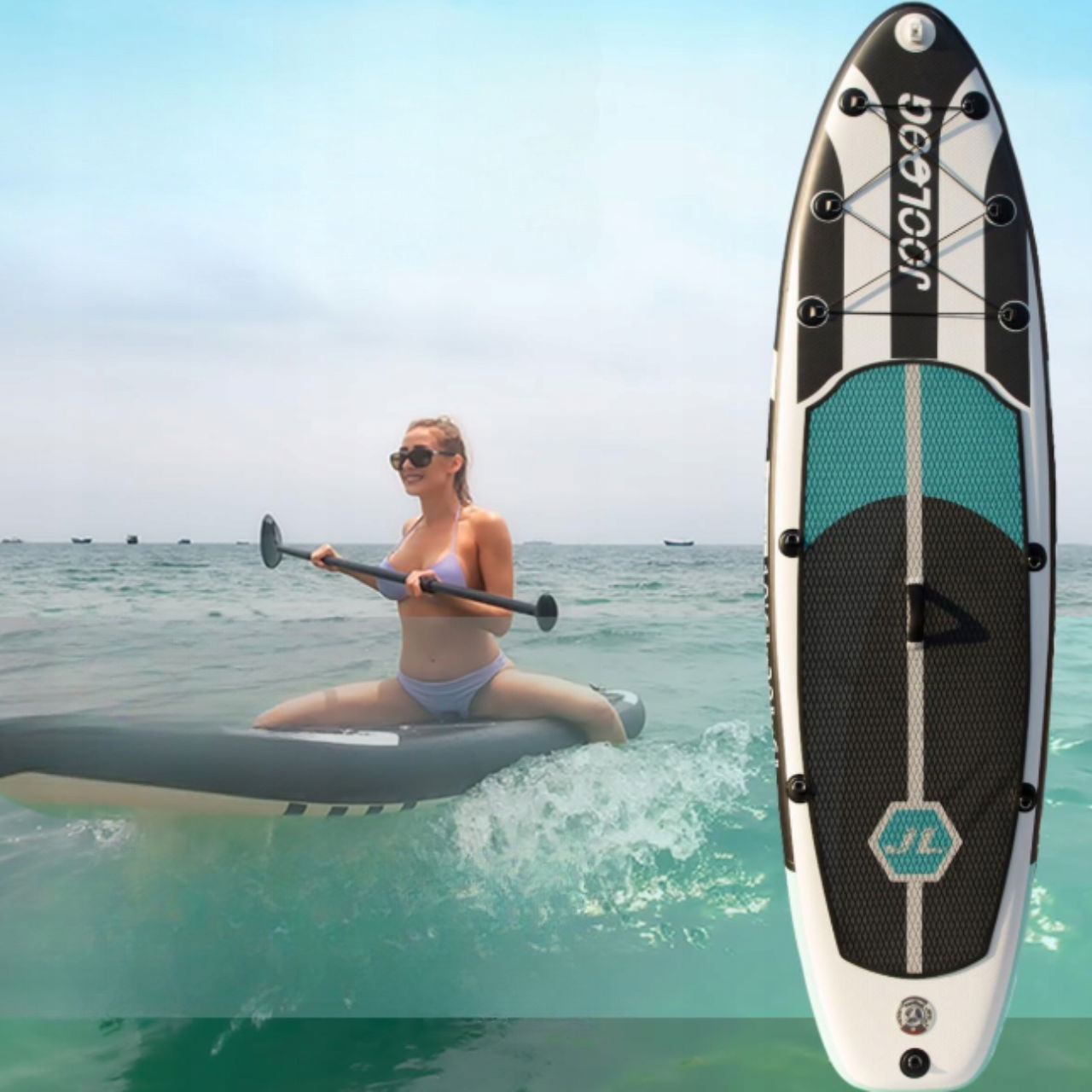 Nadmuchiwana deska SUP JOOLOOG 320 x 81 x 15 cm to wszechstronny sprzęt sportowy przeznaczony zarówno dla początkujących, jak i bardziej doświadczonych miłośników paddleboardingu. Dzięki imponującej nośności 200 kg oraz stabilnej konstrukcji z grubym, 15-centymetrowym pokładem, zapewnia komfort i bezpieczeństwo podczas pływania. Dodatkowe siedzisko sprawia, że można ją wykorzystać także jako kajak, co poszerza możliwości użytkowania. Idealna do rekreacyjnych wycieczek po jeziorze, morzu czy rzece, a po złożeniu i spakowaniu w torbę transportową – łatwa do przechowywania i przenoszenia.