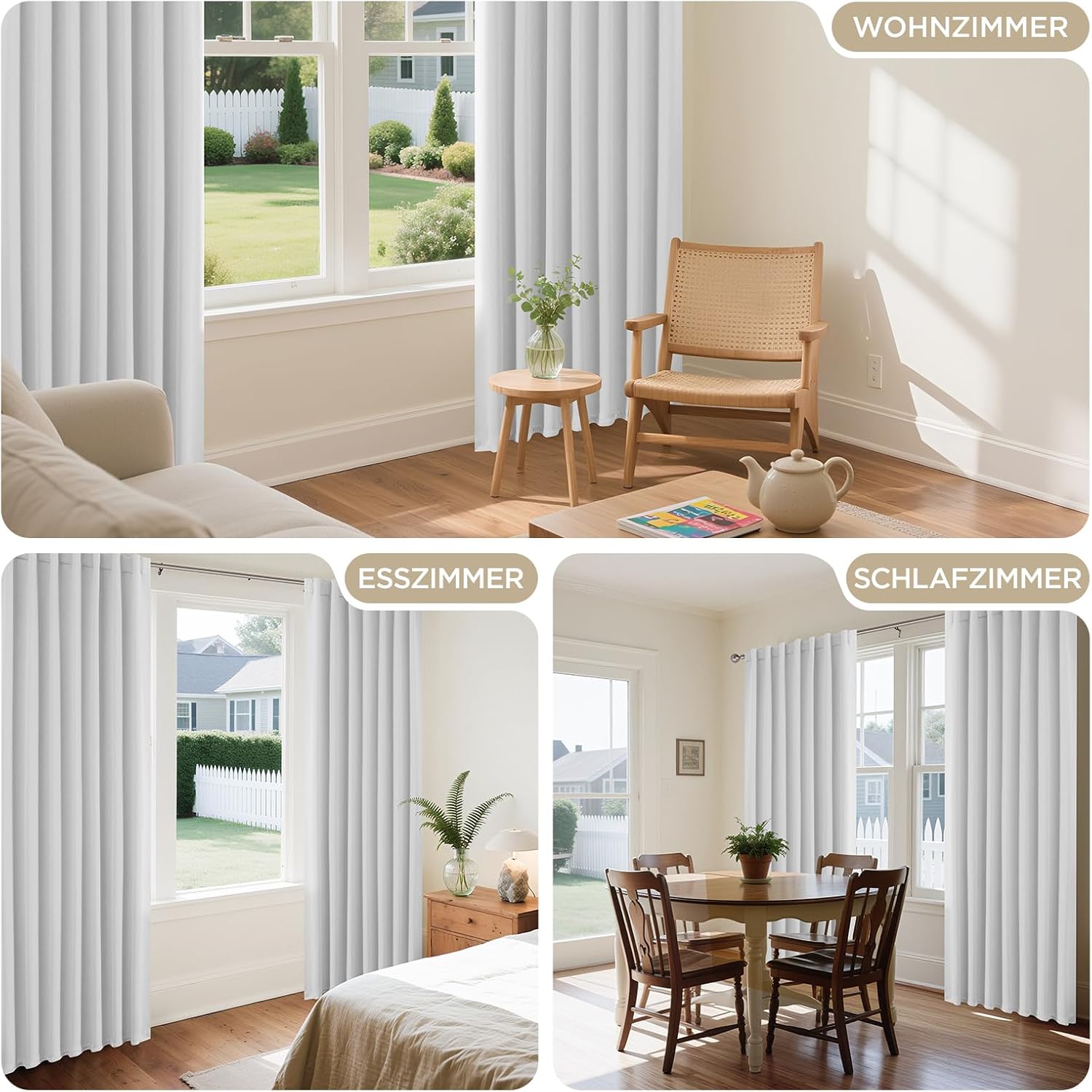 ⭐Właściwości blokujące światło słoneczne i izolujące termicznie: Zasłony do salonu marki Joydeco blokują 85–99% światła słonecznego i szkodliwe promieniowanie UV (lepiej sprawdzają się ciemne kolory), dzięki czemu latem pomieszczenie pozostaje chłodne, a ciepło nie nagrzewa się.