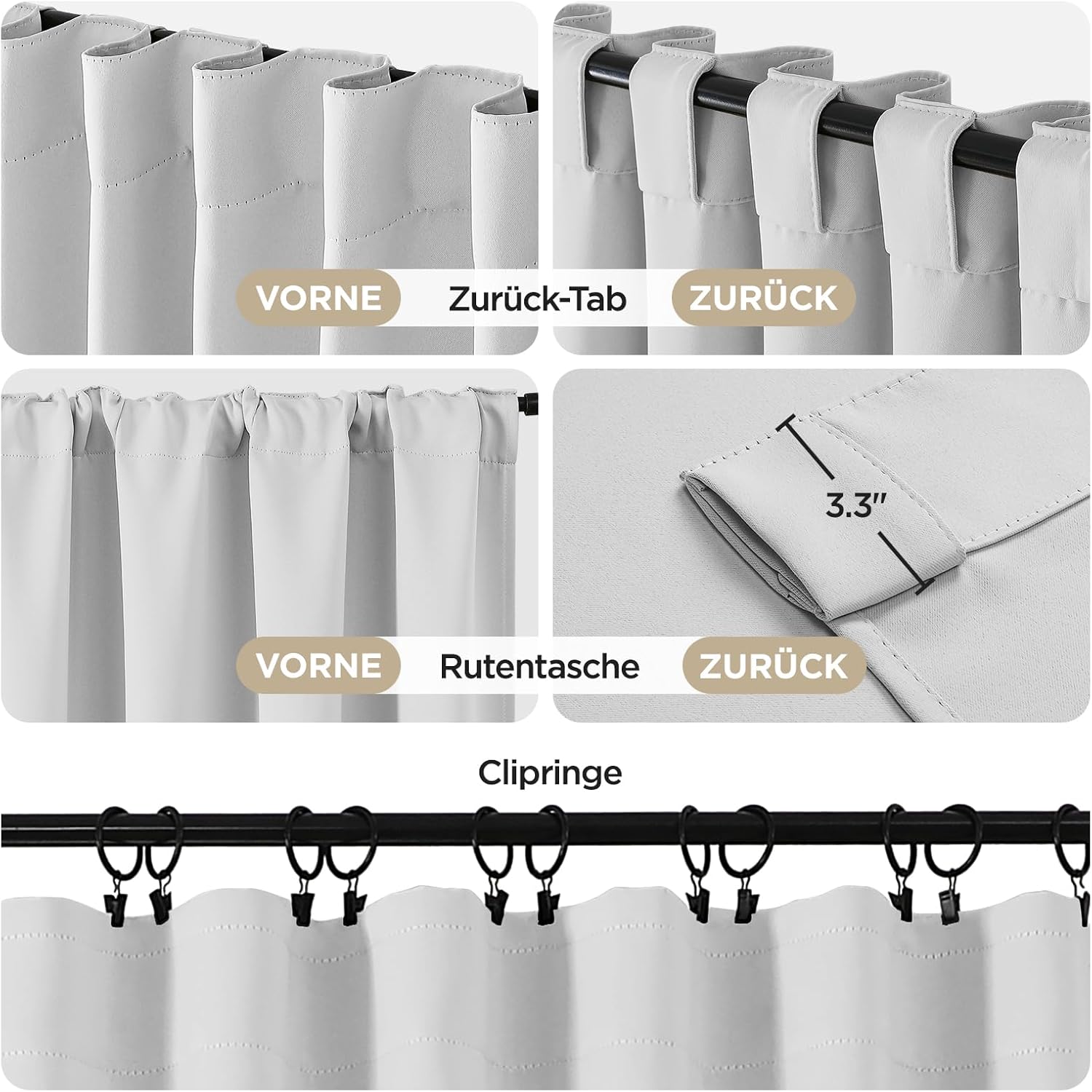 ⭐Tylna zakładka i kieszeń na drążek: bez zagnieceń i z nitkami. Zasłony zaciemniające Joydeco są dostępne zarówno z kieszenią na drążek, jak i tylną zatyczką. Możesz wybrać wygodny sposób dekoracji okien.
