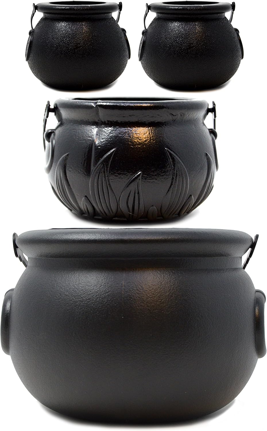 🎃Wiadro na cukierki St Patrick Halloween Cauldron z uchwytem zawiera 4 Halloween Witch's Cauldron z uchwytem w 3 różnych rozmiarach. Jeden duży rozmiar 8''x 6"; Jeden średni rozmiar 5 1/2 "x 4" i dwa małe rozmiary 2 1/2 "x2 1/4".