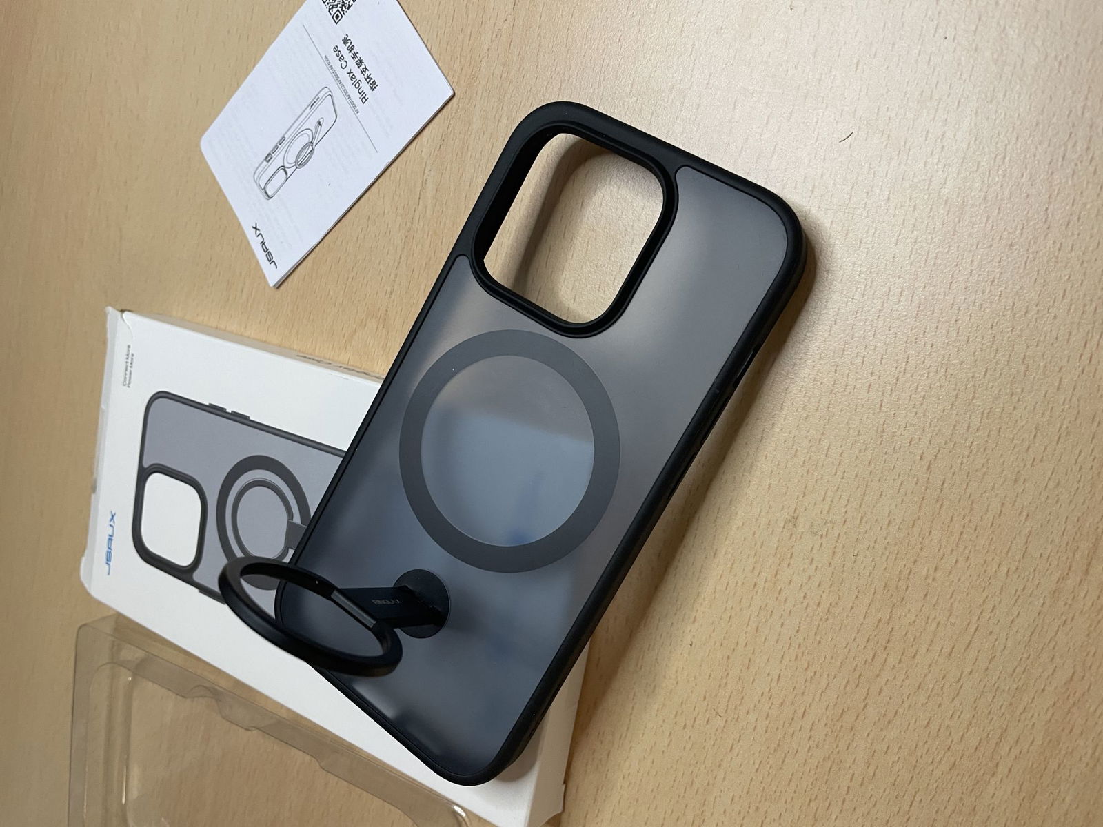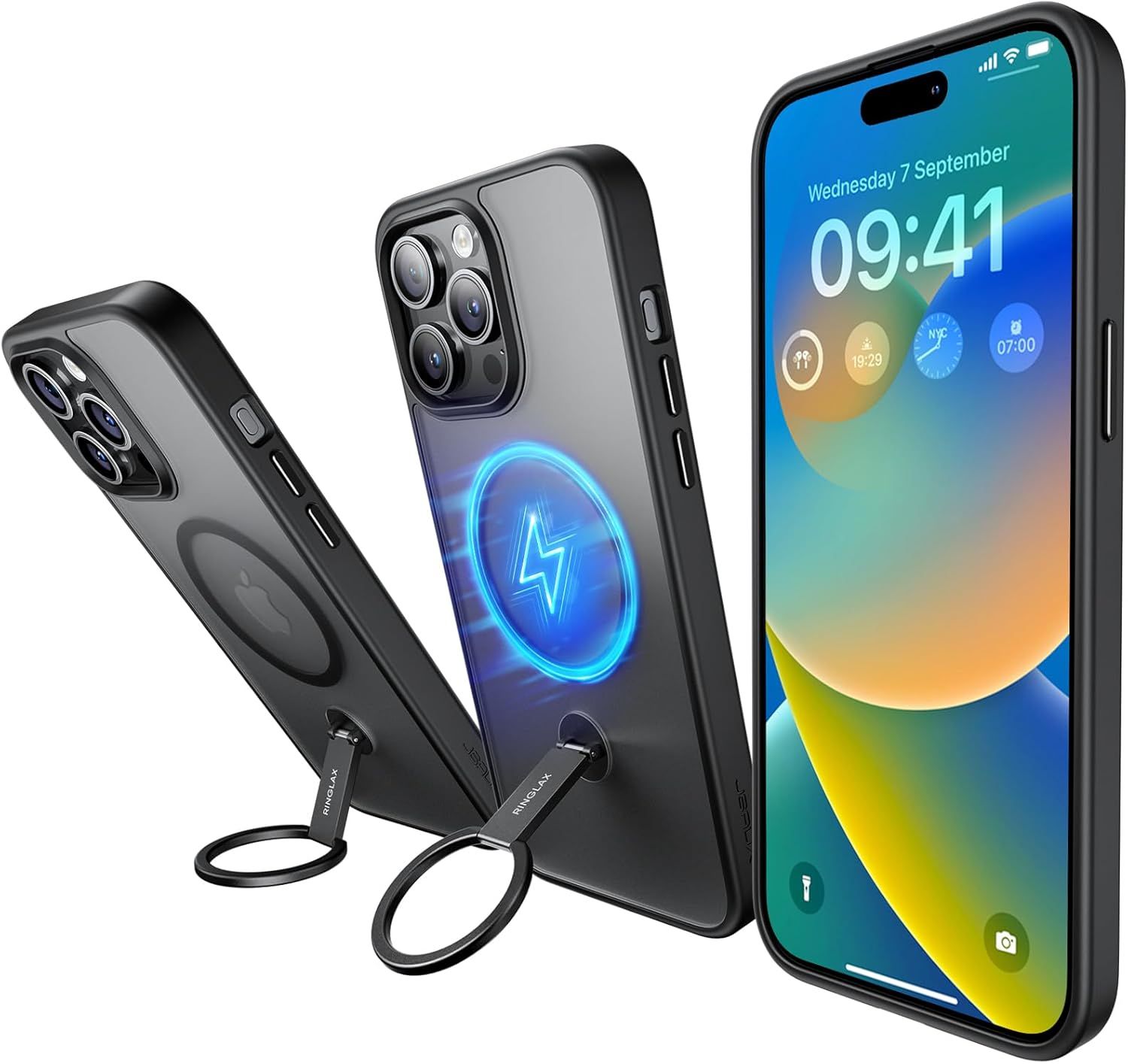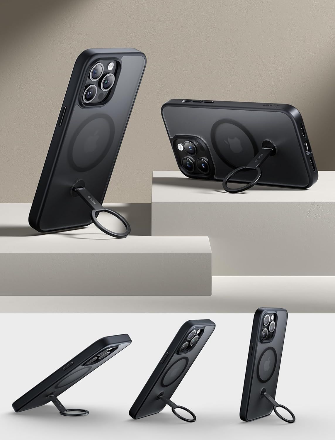 JSAUX czarne magnetyczne etui case z uchwytem stojak MagSafe iPhone 15 Pro