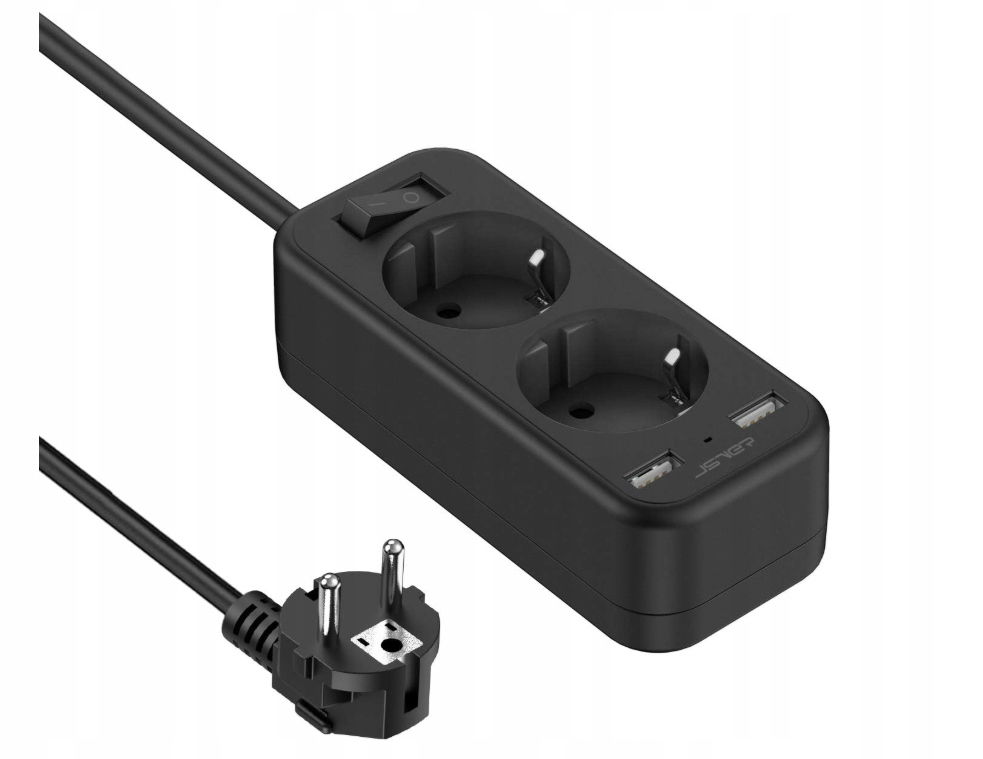 JSVER listwa zasilająca wielogniazdowa 5 gniazd + 2x USB 3.4 A