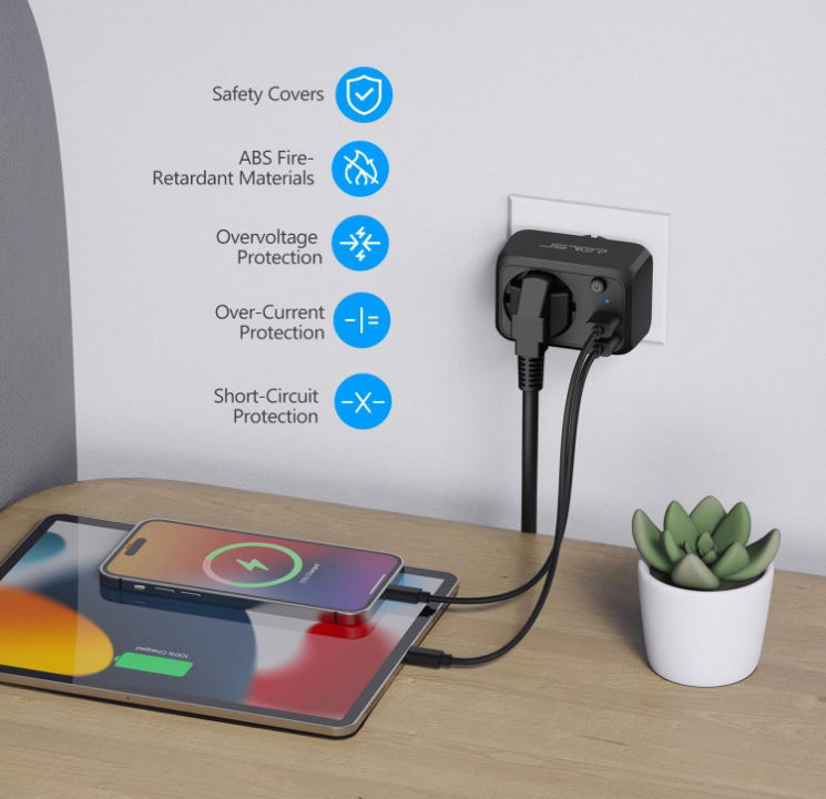 - ✴️ Bezpieczeństwo i ochrona-Zabezpieczenia przed przepięciem, nadmiernym prądem, przeciążeniem i zwarciem oraz osłony chroniące dzieci i zwierzęta przed dostępem do nieużywanych gniazd.