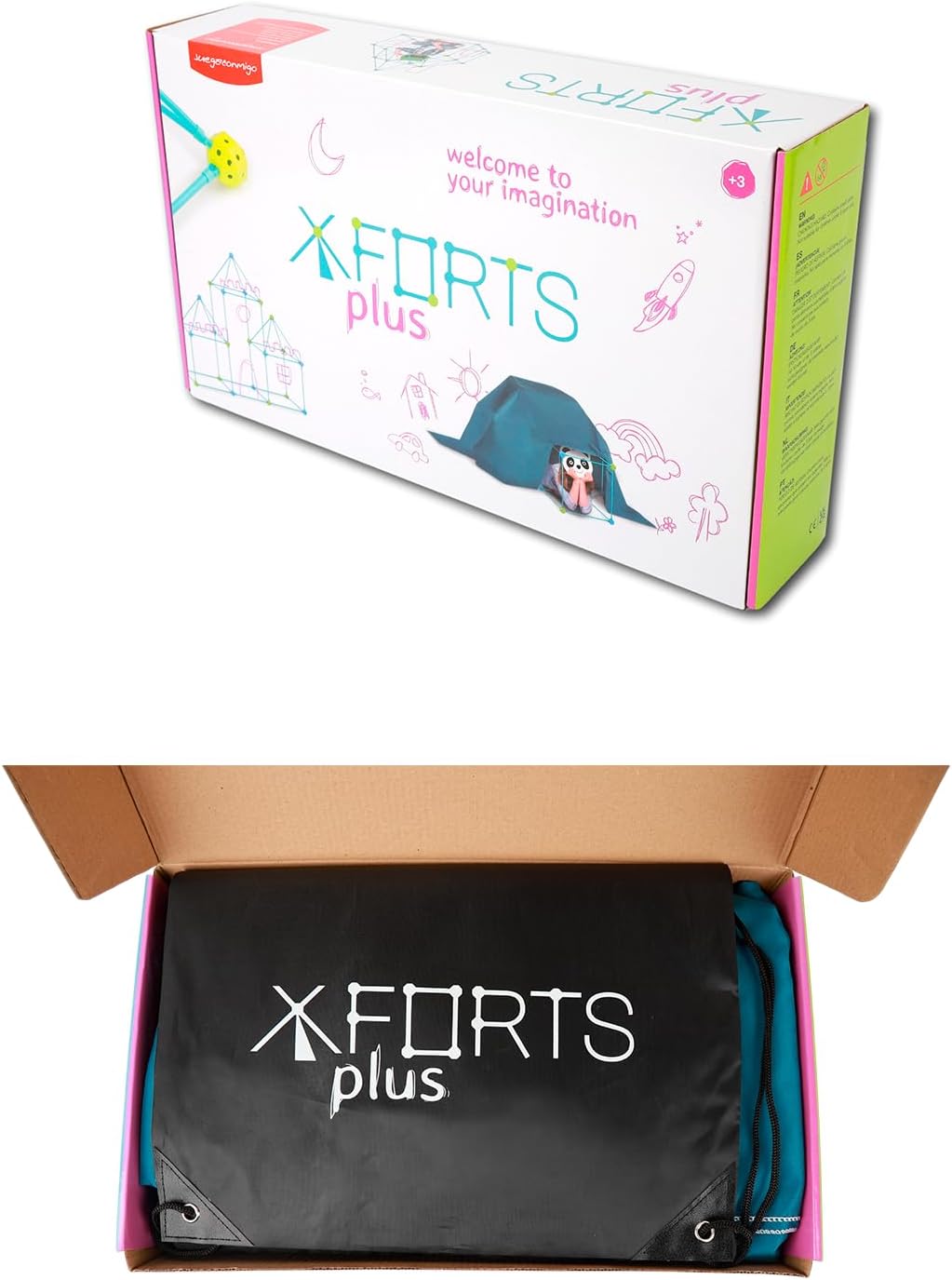 Juegaconmigo X-FORTS zestaw budowlany dla dzieci, zamki, tunele, lekkie i wytrzymałe części, łącznie z materiałem (zestaw 85 elementów)