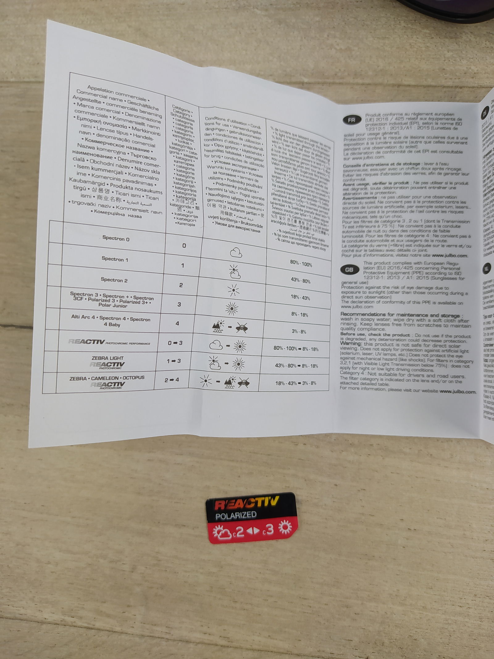 Soczewki fotochromowe z polaryzacją Reactiv Nautric kat. 2 do 3, ciemnieją lub rozjaśniają się w zależności od natężenia światła, a polaryzacja eliminuje odblaski światła na wszystkich powierzchniach. Posiadają współczynnik przepuszczalności światła widzialnego: 9% - 32% Zapewniają 100% ochronę przed promieniami UVA, UVB, UVC