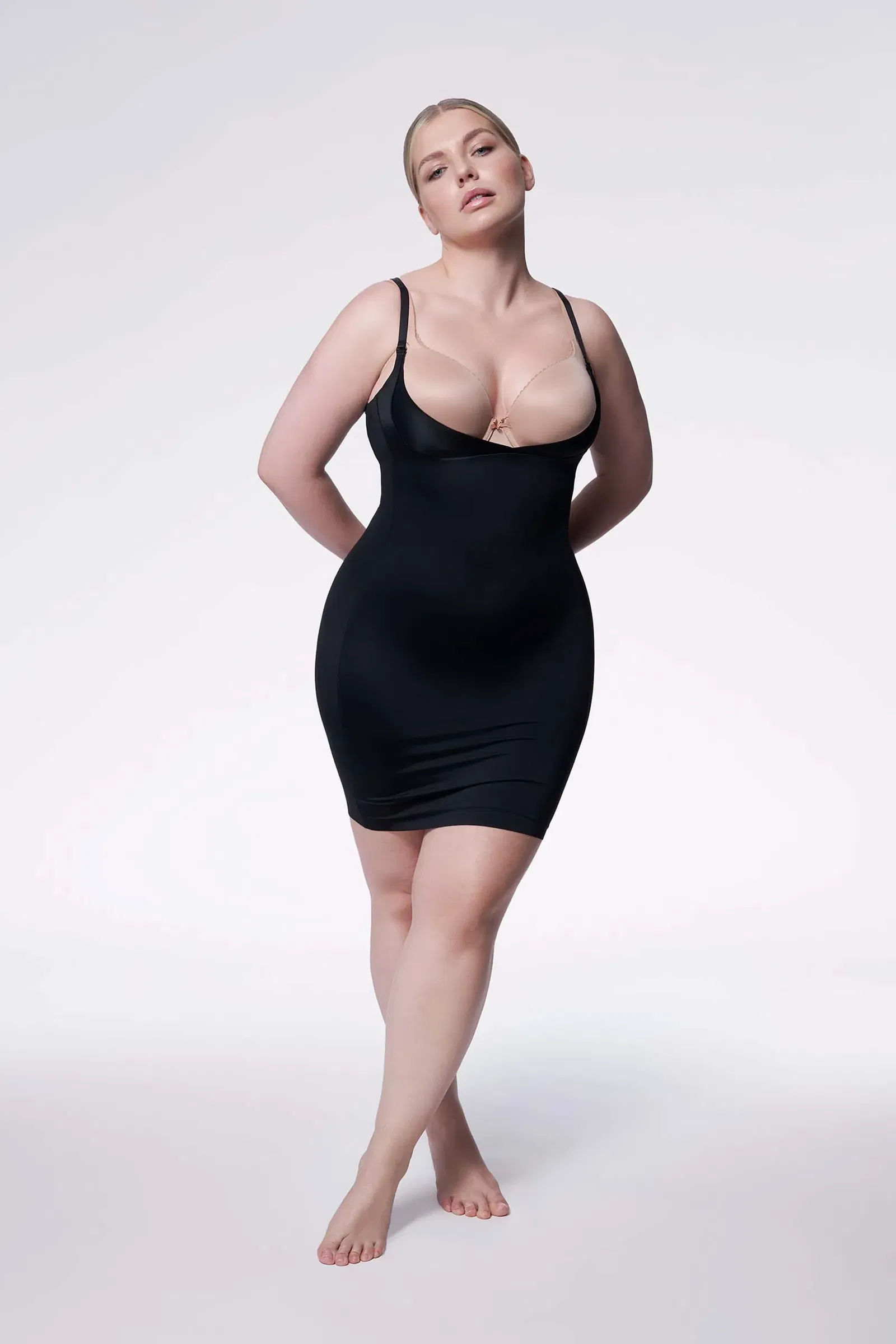 Halka pod biust z funkcją modelująco-wyszczuplającą. Gładka, elastyczna, wykonana z oddychającej dzianiny. Perfekcyjnie dopasowuje się do ciała, poprawiając kształt partii brzucha, modelując linię bioder i biustu. Ramiączka silikonowe znajdują się w komplecie. Wykonana w technologi Invisible Line, pozwala wtopić się pod ubranie. Załóż ją i zapomnij o kompleksach! Skład: 84% poliamid, 16% elastan.