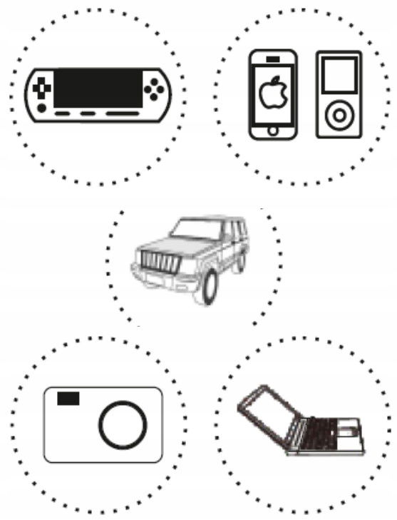 - Kabel zasilający do telefonu, laptopa, tabletu, kamery, odtwarzacza mp3/mp4 i innych akcesoriów elektronicznych.