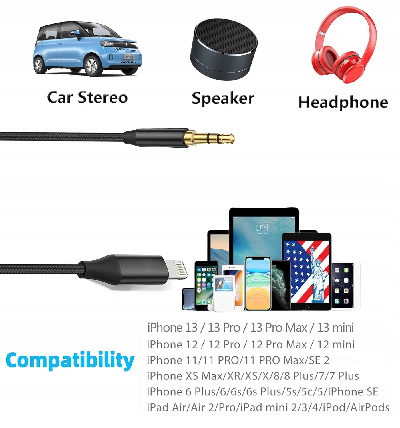 Kabel ten pozwala łatwo podłączyć swojego iPhone'a do samochodowych zestawów audio, domowych urządzeń stereo, głośników Hi-Fi, słuchawek, komputera lub innych urządzeń z gniazdem wejściowym 3,5 mm.