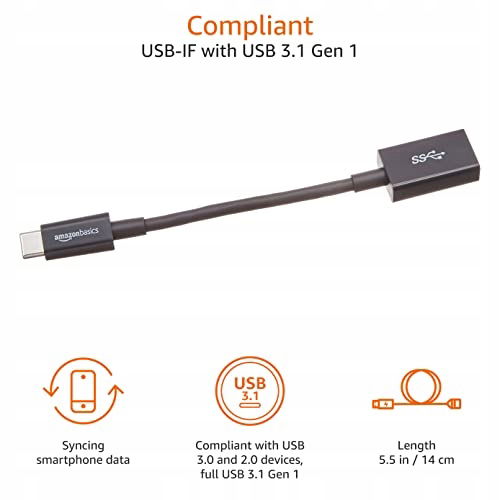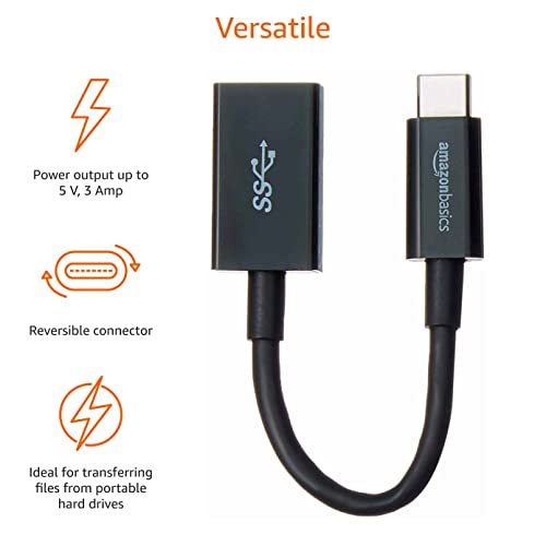 Kabel konwertujący USB 3.1 USB-C do USB-A z wtykiem męskim Amazon Basics, 5 Gb/s, z certyfikatem USB-IF do laptopów, tabletów, telefonów, czarny