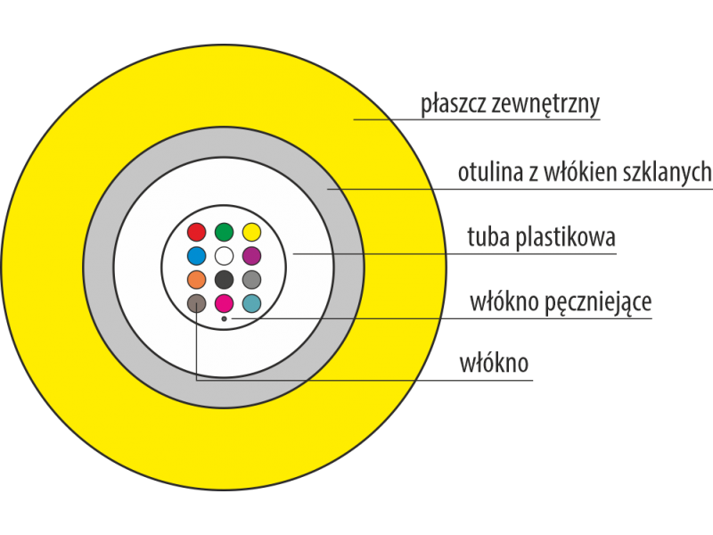 Jednotubowa konstrukcja jest bardzo przyjazna w codziennej pracy instalatora, gwarantując wygodę obróbki kabla i spawania poszczególnych włókien. W obrębie tej konstrukcji można znaleźć zarówno kable jednomodowe (w standardzie włókien G.652.D i G.657.A dla OS1 i OS2 na długościach fali 1310 nm, 1550 nm, 1625 nm i inne), jak i multimodowe (OM2, OM3, OM4 i OM5 dla długości fali 850 nm i 1300 nm). Poszczególne włókna w tubie dla ułatwienia pracy instalatora zostały oznaczone kodem kolorowym.