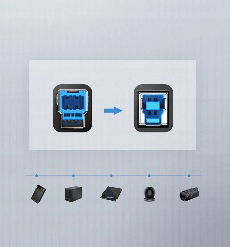 Kabel do USB 3.0 typ A do typu B | Przewód łączący komputer z drukarką, skanerem, hubem USB w monitorze itp.