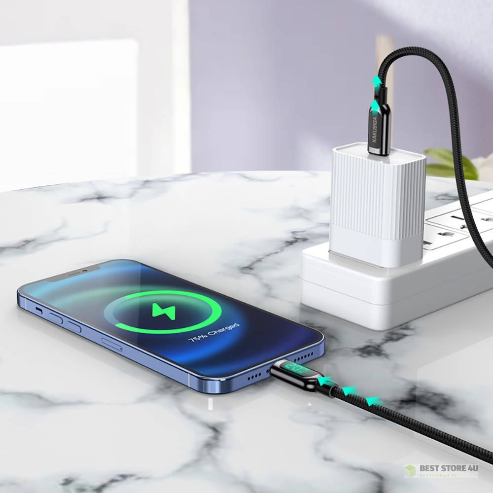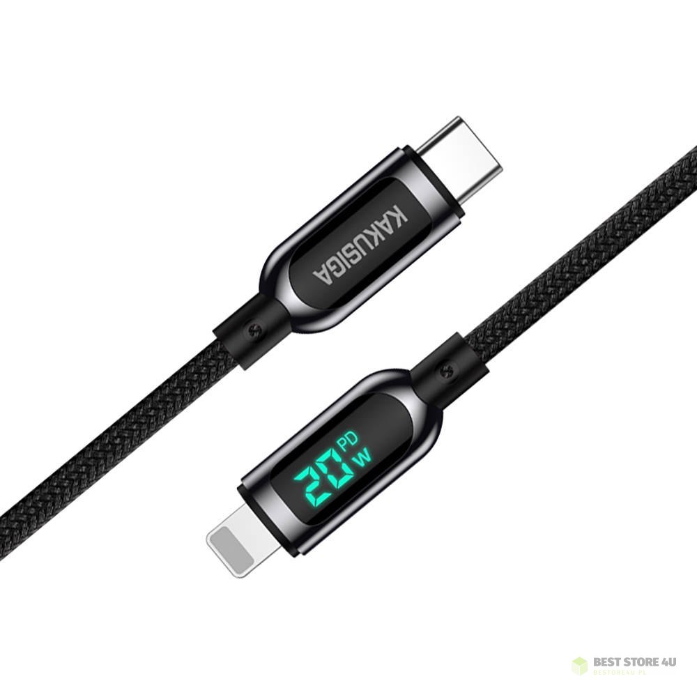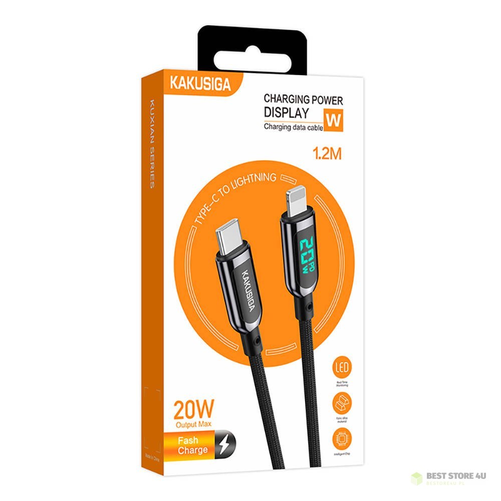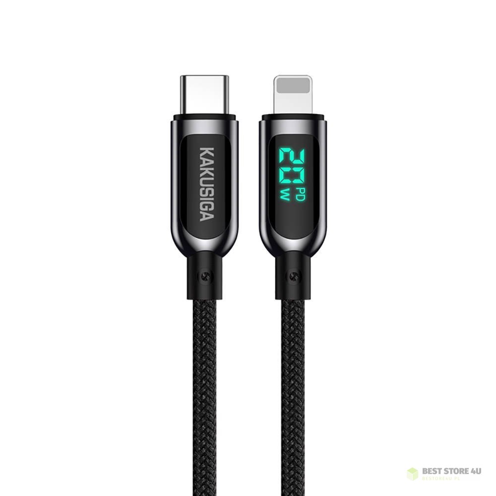 Kabel USB Typ C - Apple Lightning 20W 1,2m Wyświetlacz LED Szybkie Ładowanie i Przesyłanie Danych Kakusiga Digital Display Fast