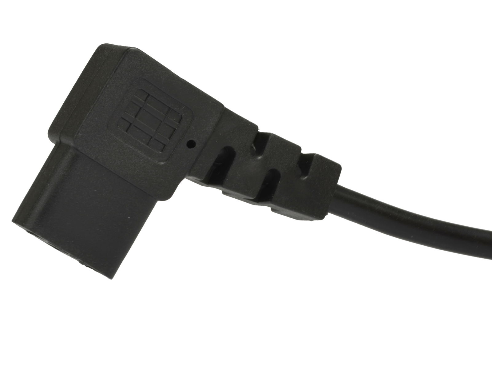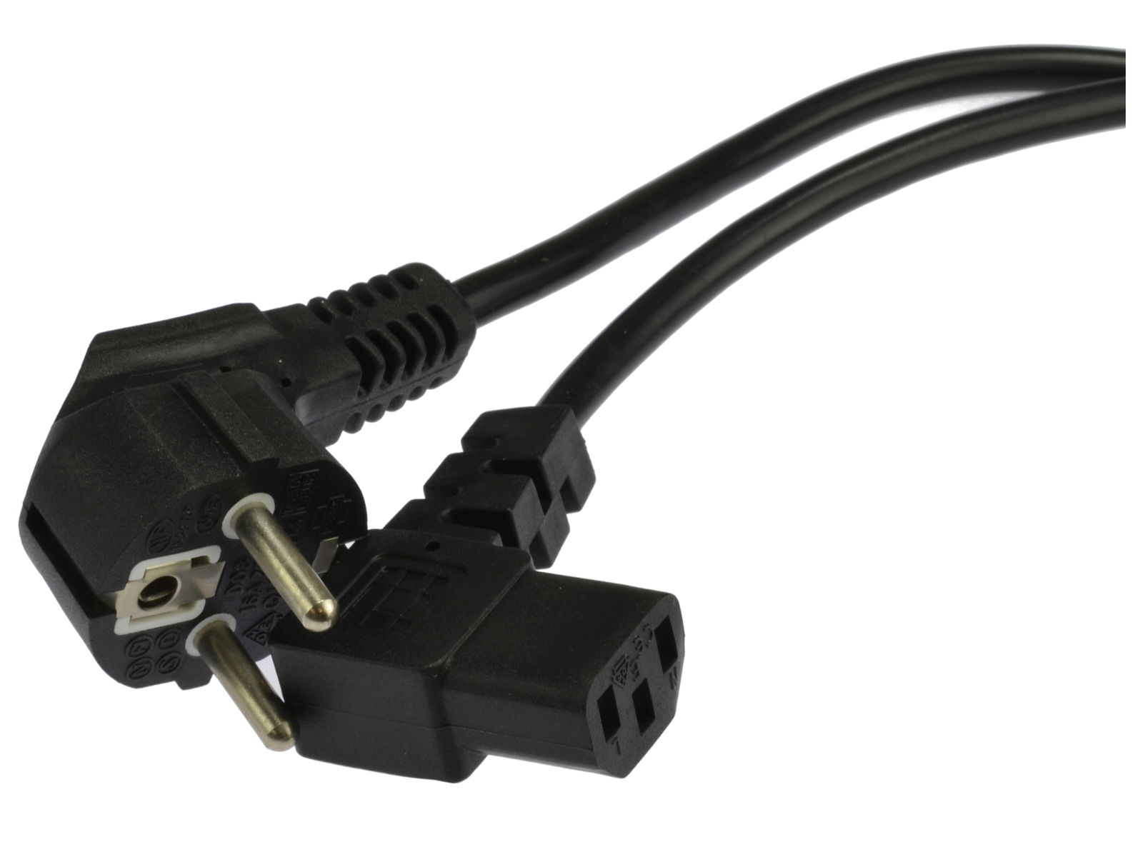 Rodzaj złącza: C13 (męski odpowiednik to C14) zgięty pod kątem 90°; z drugiej strony wtyk uniwersalny (DIN49441)