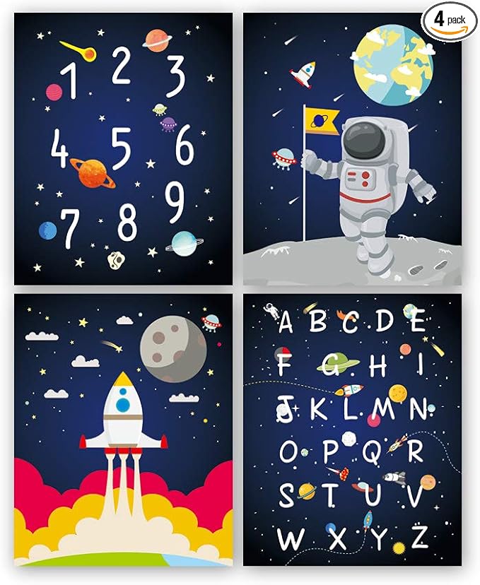 Idealne do dekoracji ścian. Szukasz lekcji dla dzieci z podstawową wiedzą? UCZ SIĘ I BAWIĆ - Zabawa jest najpopularniejszą metodą uczenia się naszego mózgu. Nasze kreatywne wydruki artystyczne na planetach z literami, liczbami, uroczymi astronautami, galaktycznymi niebami i rakietami są wystarczająco bogate, aby uczyć dzieci. Te pozytywne dzieła sztuki ściennej mogą zainspirować Twoje spostrzeżenia, wzmocnić Twoją pewność siebie, a tym samym przynieść korzyści Twojej przyszłości.