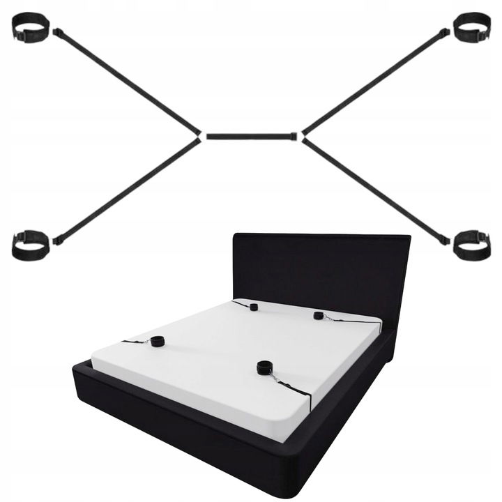 Kajdanki Uprząż do Łóżka BDSM Bondage na Ręce i Nogi Czarna