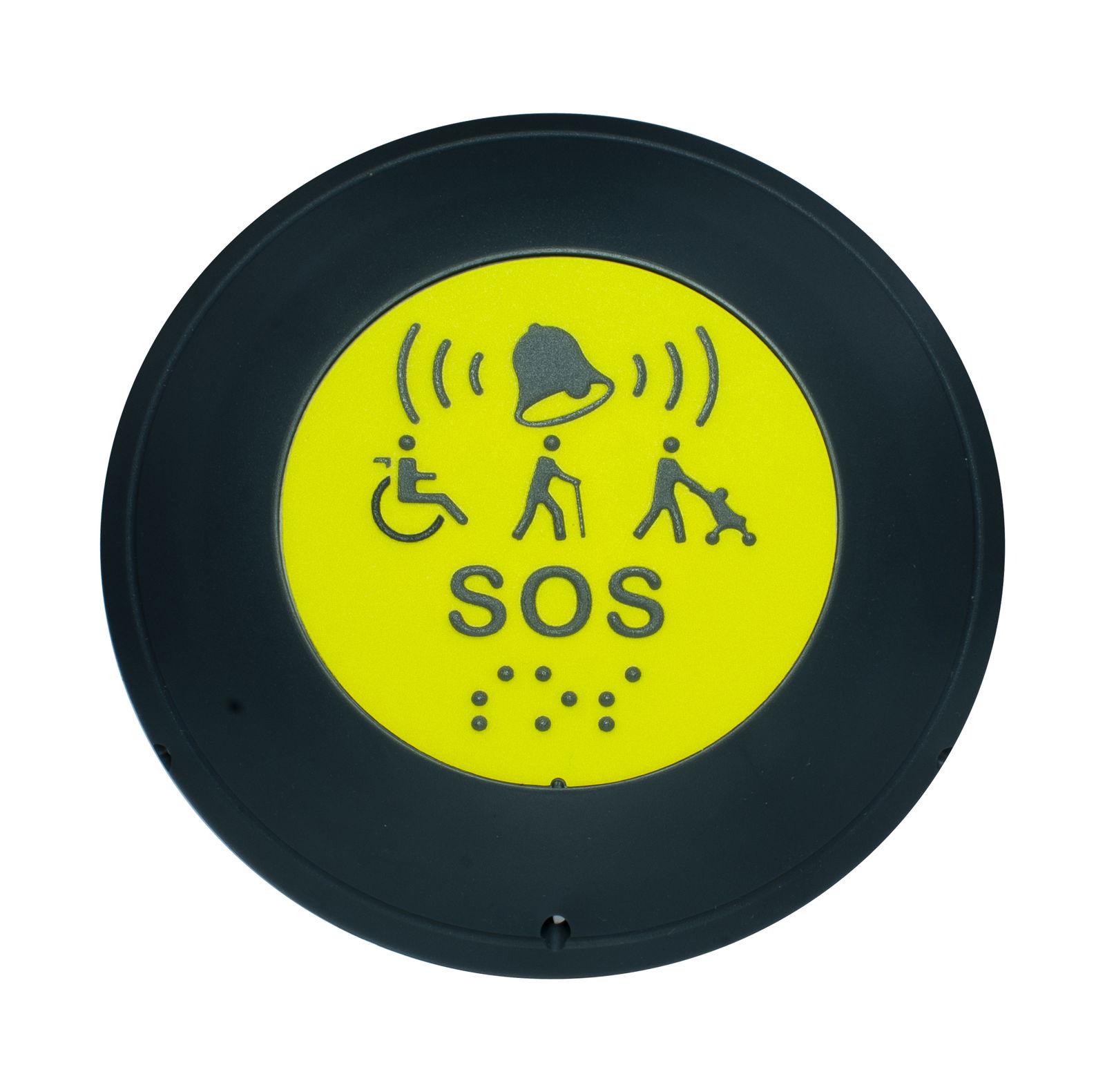 Bezprzewodowy przycisk KAL-PB1 to nadajnik, który idealnie sprawdzi się w systemach przywoławczych. Dzięki średnicy 12 cm oraz hermetycznej i wodoodpornej konstrukcji (klasa szczelności IP56), może być stosowany w dowolnym miejscu wewnątrz budynku. Nadajnik wyróżnia się charakterystycznym żółtym przyciskiem SOS, alfabetem Braille'a oraz czytelnym piktogramom, co zapewnia łatwość i intuicyjność obsługi. Przyciski można trwale zamontować na ścianie lub meblach, aby zapobiec ich przemieszczaniu, co jest szczególnie ważne w placówkach medycznych i opiekuńczych.