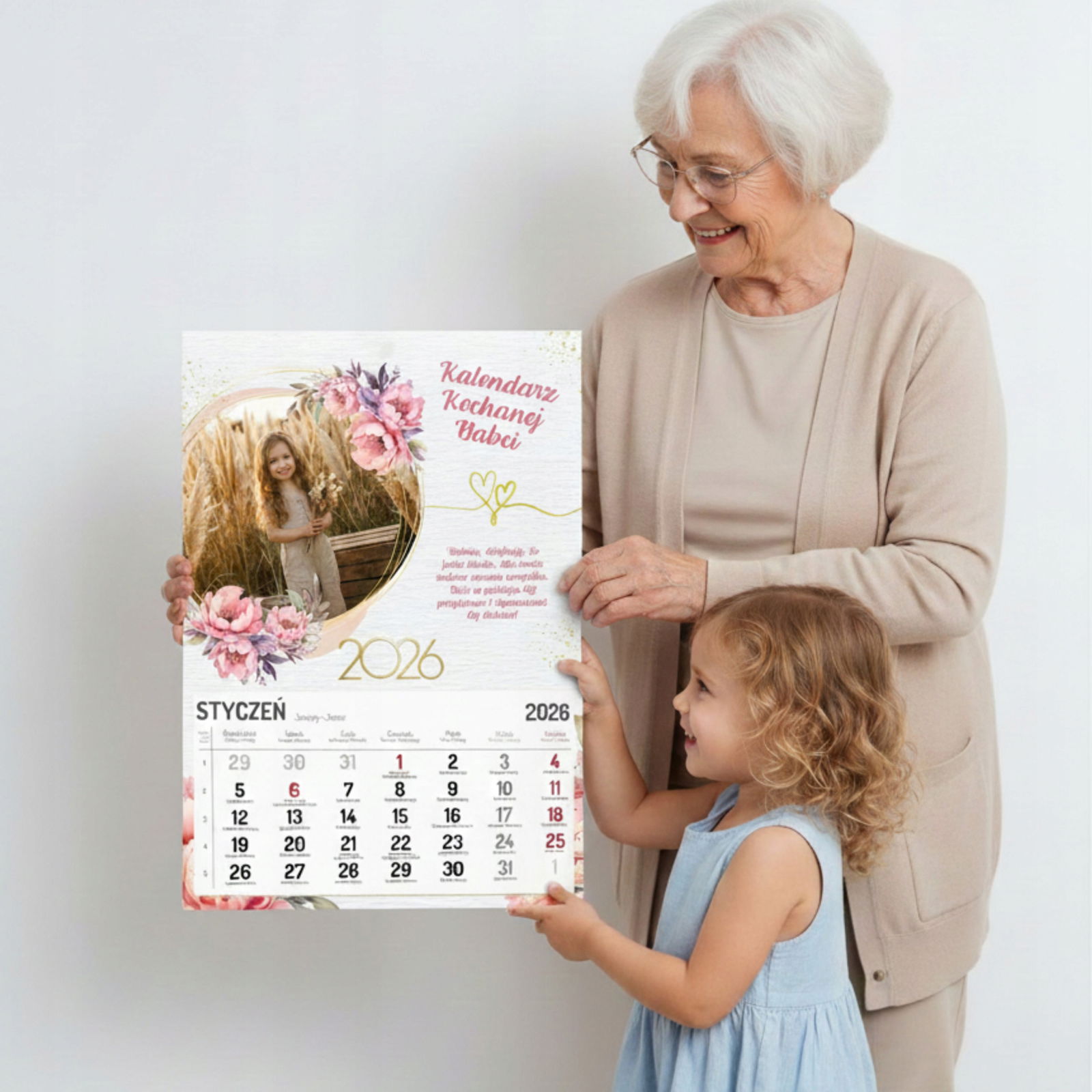 Nasz duży kalendarz w formacie A3 to idealny prezent z okazji Dnia Babci i Dziadka. Połączenie Waszego rodzinnego zdjęcia, uroczej grafiki i czytelnego kalendarium sprawia, że jest to upominek zarówno piękny, jak i praktyczny.