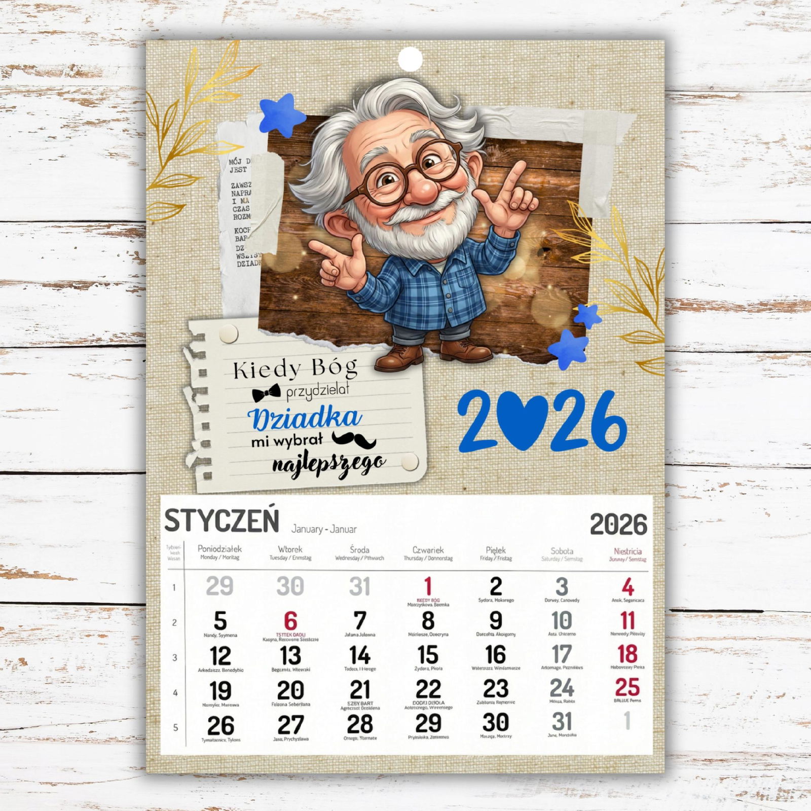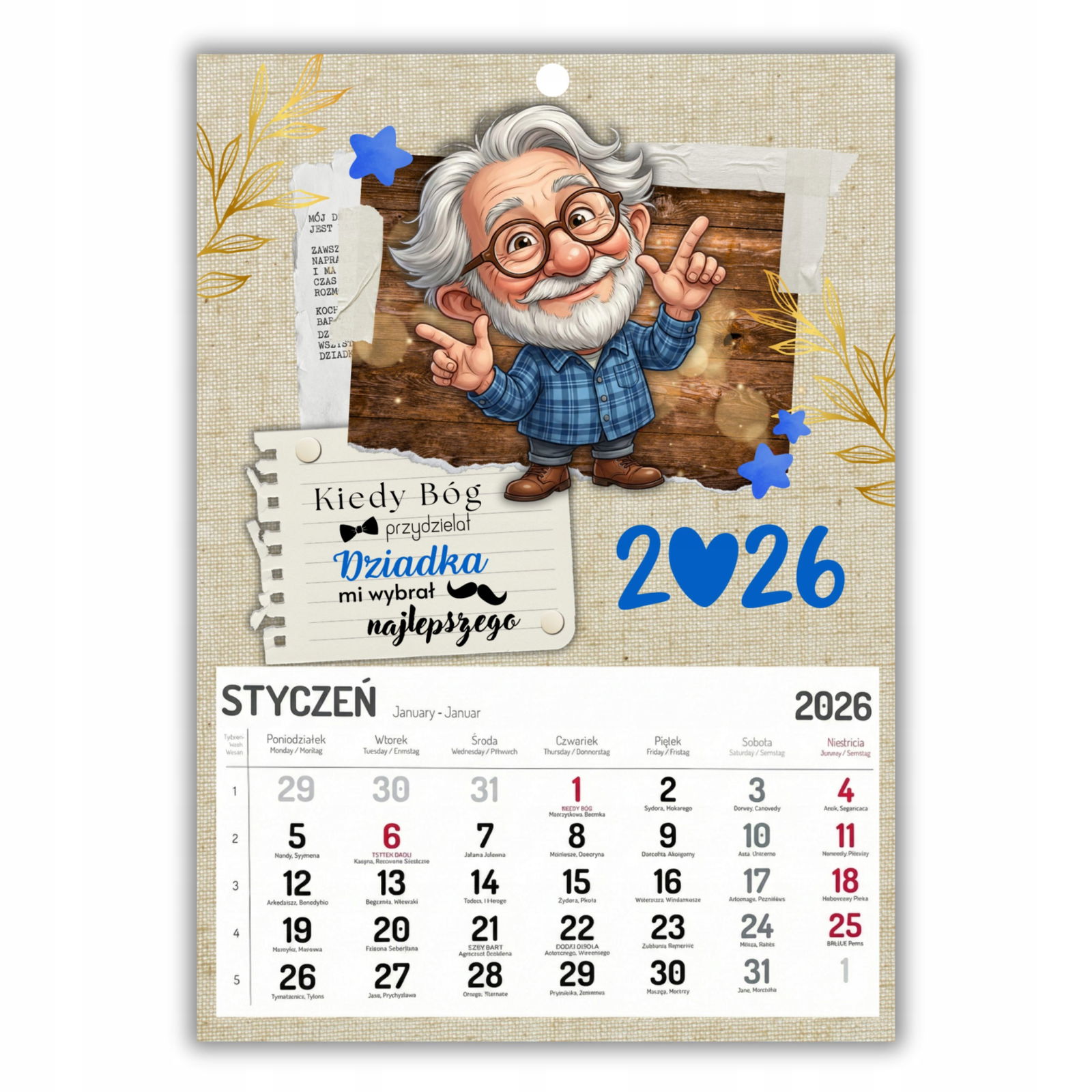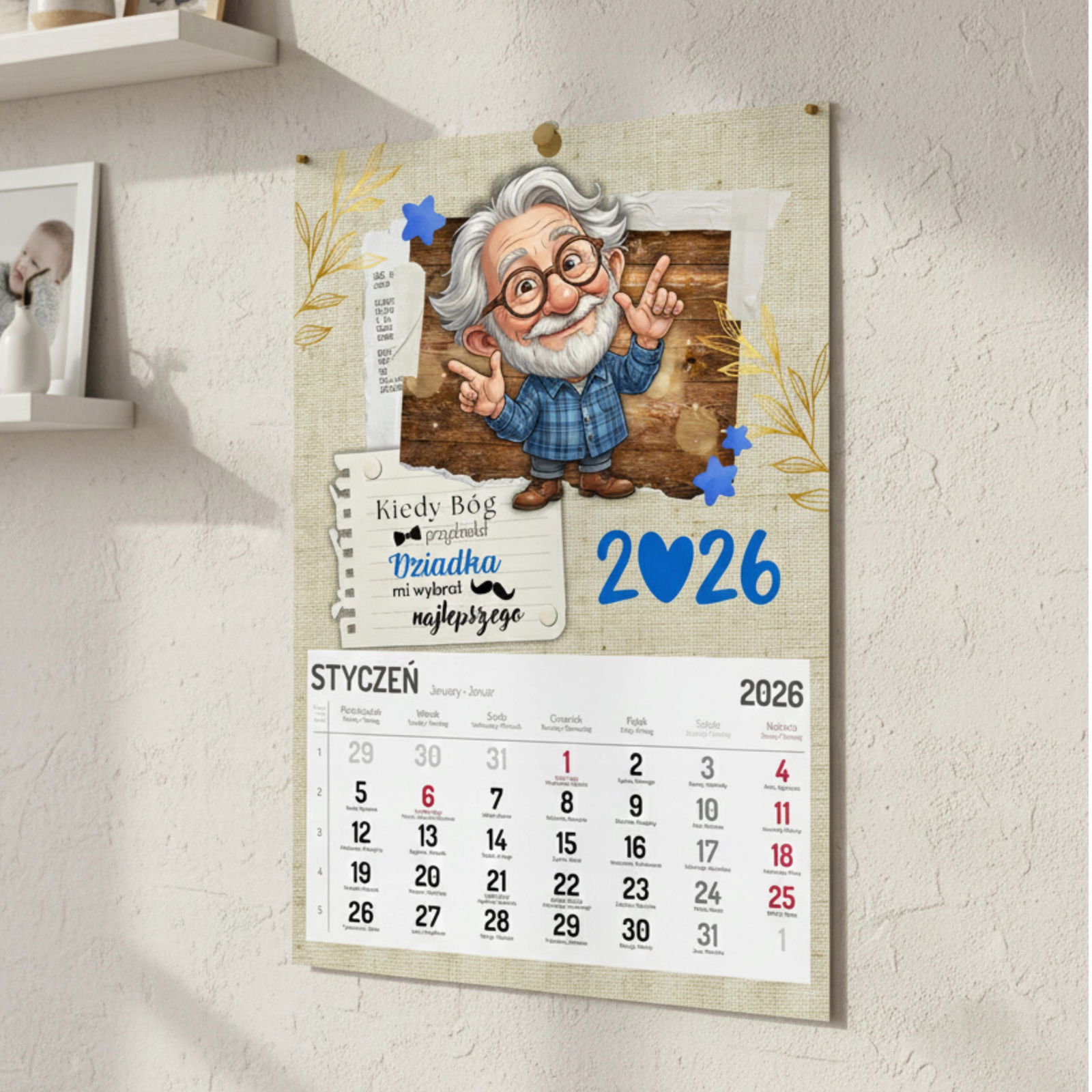 Nasz duży kalendarz w formacie A3 to idealny prezent z okazji Dnia Babci i Dziadka. Połączenie Waszego rodzinnego zdjęcia, uroczej grafiki i czytelnego kalendarium sprawia, że jest to upominek zarówno piękny, jak i praktyczny.
