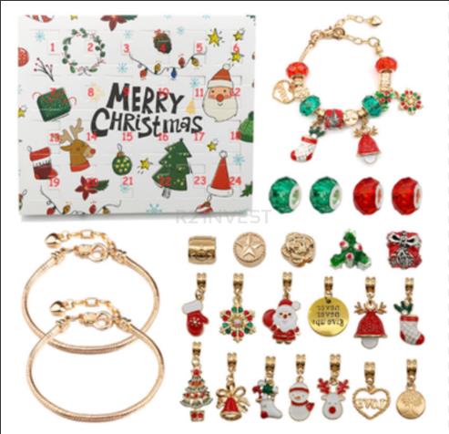 KALENDARZ ADWENTOWY BRANSOLETKI DLA DZIECI CHARMS ZAWIESZKI 24 ELEMENTY