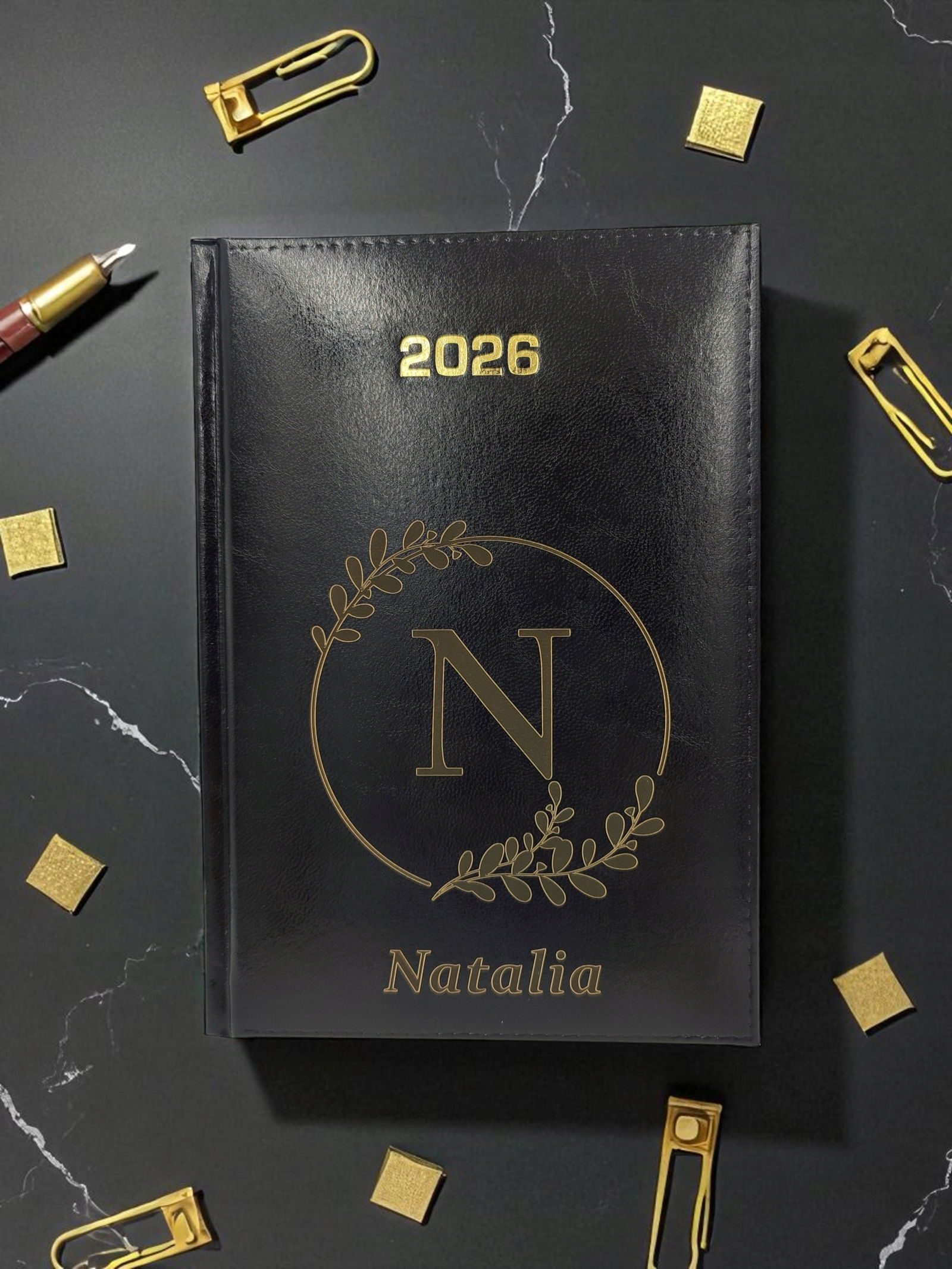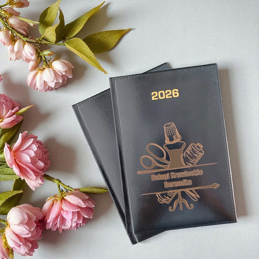 KALENDARZ DZIENNY A5 TERMINARZ 2026 KSIĄŻKOWY Z GRAWEREM LOGO prezent