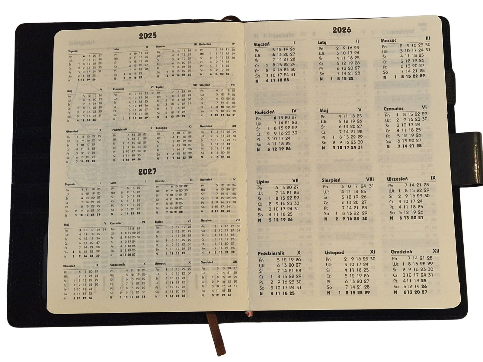 - Dodatkowe strony z planem miesięcznym na początku roku bieżącego (2025).