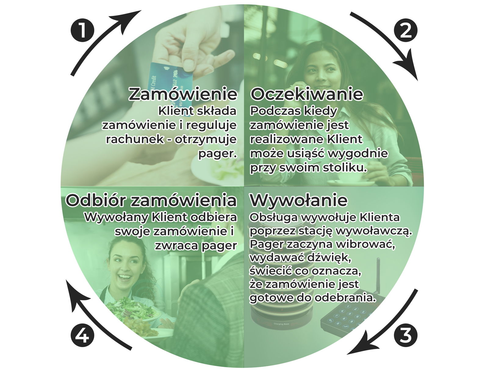 - Usprawnienie obsługi i pracy personelu– szybkie przyjmowanie zamówień i ułatwienie wydawania posiłków konkretnemu klientowi