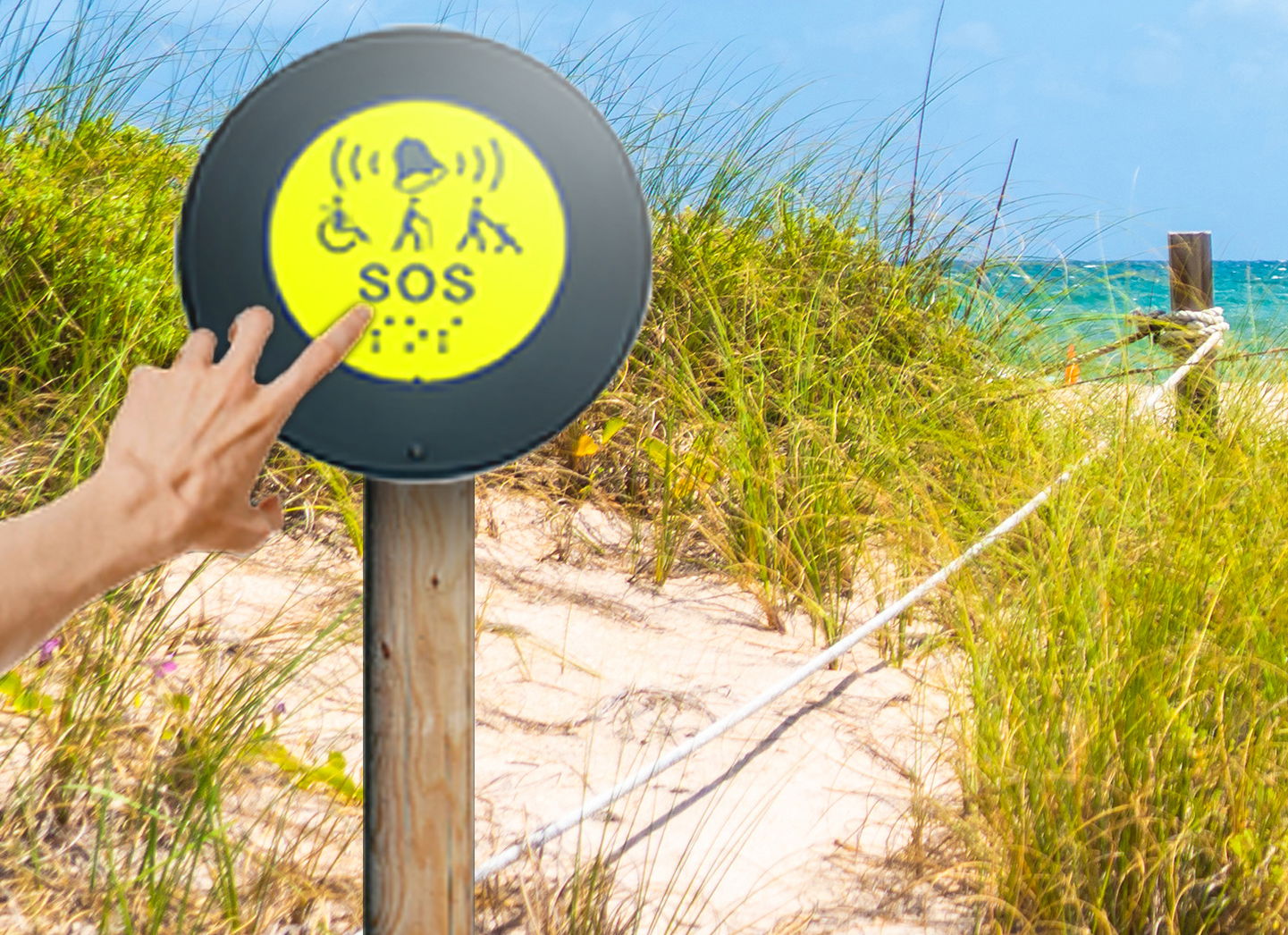 Aby zapewnić maksymalny komfort i bezpieczeństwo naszych klientów przygotowaliśmy zestaw, który idealnie sprawdzi się na plaży oraz w miejscach publicznych gdzie kwestia czasu jest najważniejsza. System oparty na przycisku wezwania SOS, który umieszczamy na wysokości wzroku oraz lampki sygnalizacyjnej, która po naciśnięciu przycisku zaczyna świecić i wydawać dźwięk.