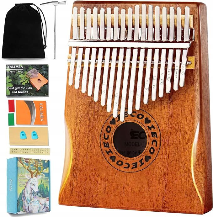 KALIMBA drewniana INSTRUMENT AFRYKAŃSKI MUZYCZNY PIANINO 17 klawiszy ZESTAW