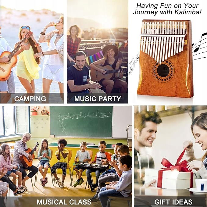 Wielofunkcyjny: klawisz Kalimba 17 spełnia większość metod odtwarzania muzyki, szarpania i przesuwania. Najlepszy instrument do występów, nagrywania, dla rodziny, na zewnątrz, do szkoły, na imprezę i do relaksu.
