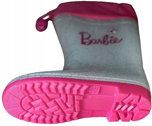 Na zewnętrznych stronach kaloszy umieszczono grafikę napis Barbie.