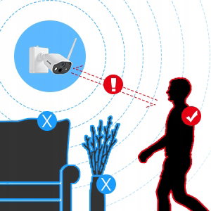 Kamera wyposażona jest w inteligentny czujnik PIR, który skutecznie rozpoznaje sylwetki ludzi, eliminując fałszywe alarmy wywołane przez ruch liści, zwierzęta czy owady.