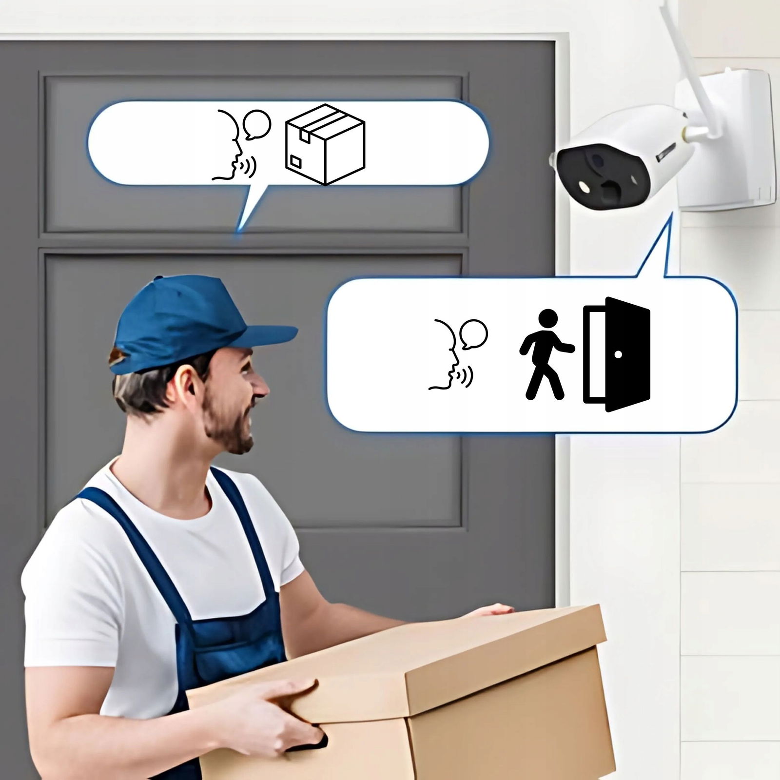 - Dwukierunkowa komunikacja audio – wbudowany mikrofon i głośnik pozwalają mówić i słuchać zdalnie.