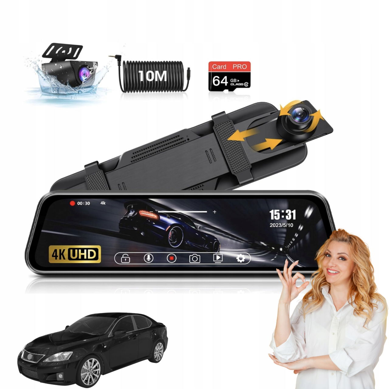 Zapewnij sobie pełną ochronę i bezpieczeństwo na drodze z nowoczesną kamerą samochodową 4K, wyposażoną w kamerę cofania i kartę SD 64 GB! To wszechstronne urządzenie rejestruje wideo w ultra wysokiej rozdzielczości 4K, zarówno z przodu, jak i z tyłu pojazdu, oferując szeroki kąt widzenia 170°.