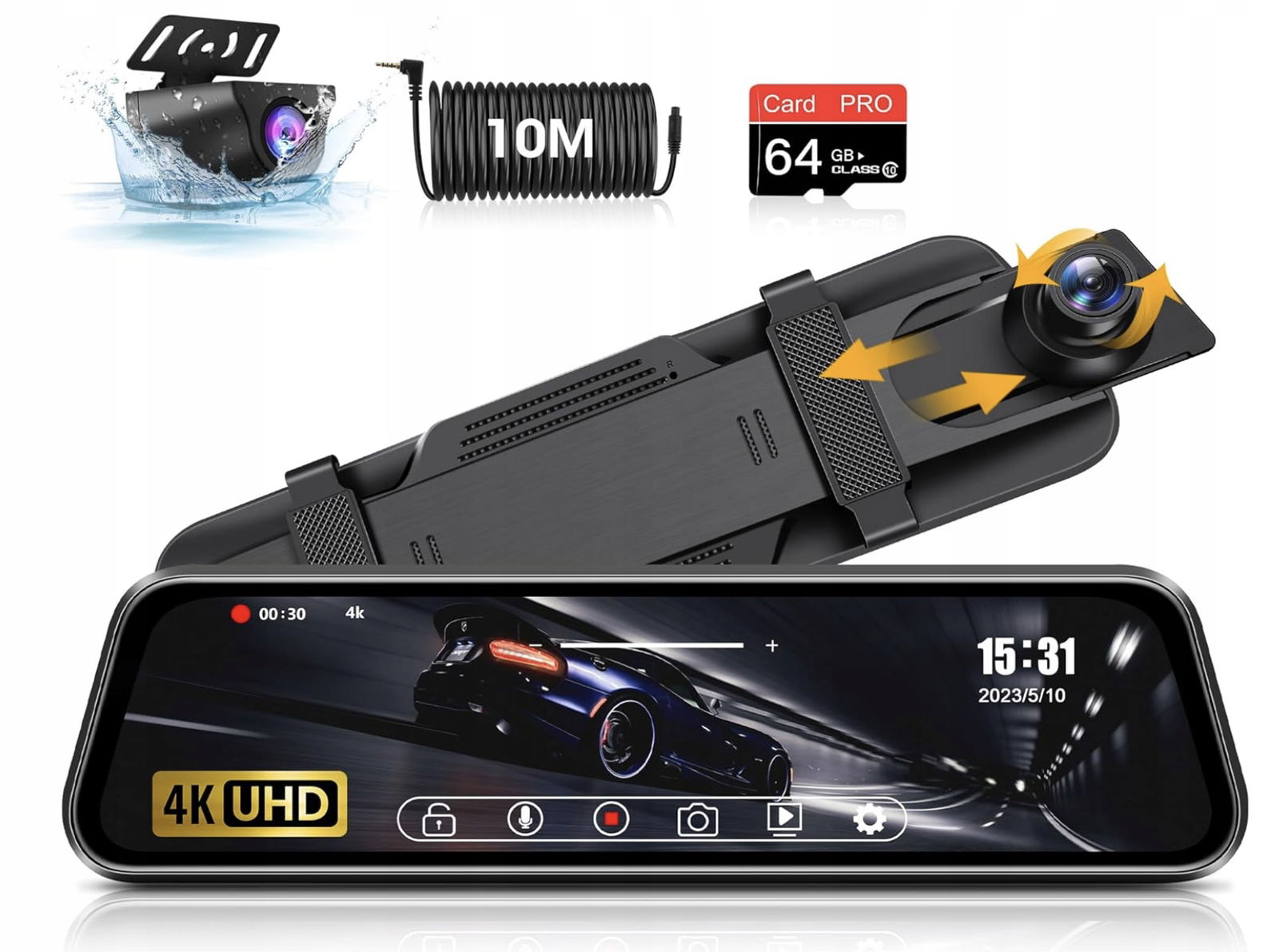 ✅ Rozdzielczość 4K Ultra HD – rejestruje obraz w wyjątkowej jakości, gwarantując wyraźne i szczegółowe nagrania zarówno z przodu, jak i z tyłu pojazdu.
