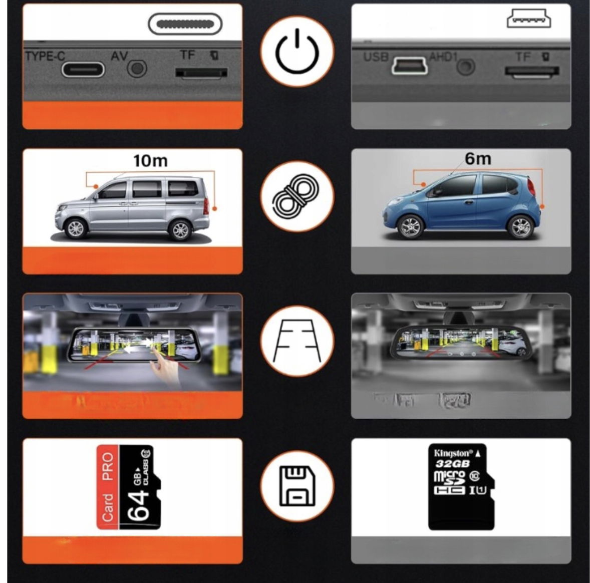 ✅ Kamera cofania z kablem 10 m – umożliwia łatwy montaż kamery na tylnej części pojazdu, co znacznie ułatwia manewry i parkowanie.