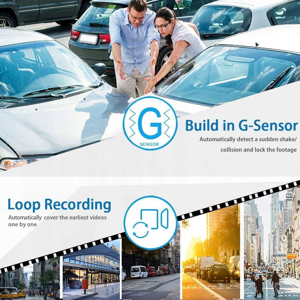 【NAGRYWANIE W PĘTLI I WBUDOWANY CZUJNIK G】 Gdy pamięć jest pełna, najwcześniejsze filmy będą automatycznie zakrywane jeden po drugim. Kamera samochodowa automatycznie wykrywa nagłe drgania/kolizję i blokuje nagranie, aby zapobiec przedostaniu się ważnego filmu nadpisywane