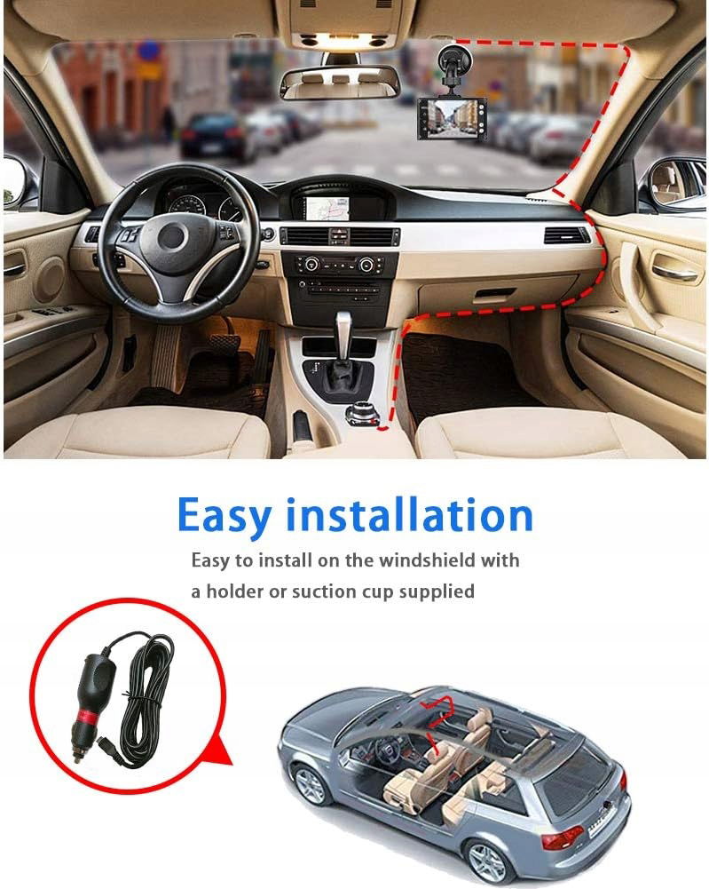 【KAMERA DASH TECHNOLOGIA NOCNA WIZJA I TECHNOLOGIA WDR】 Czujnik podczerwieni kamery samochodowej zapewnia wysokiej jakości obraz w nocy. Dopasowana technologia WDR może tłumić silne światło za Tobą, aby zapobiec nadmiernej ekspozycji i rejestrować wyraźne obrazy przy ekstremalnie słabym oświetleniu