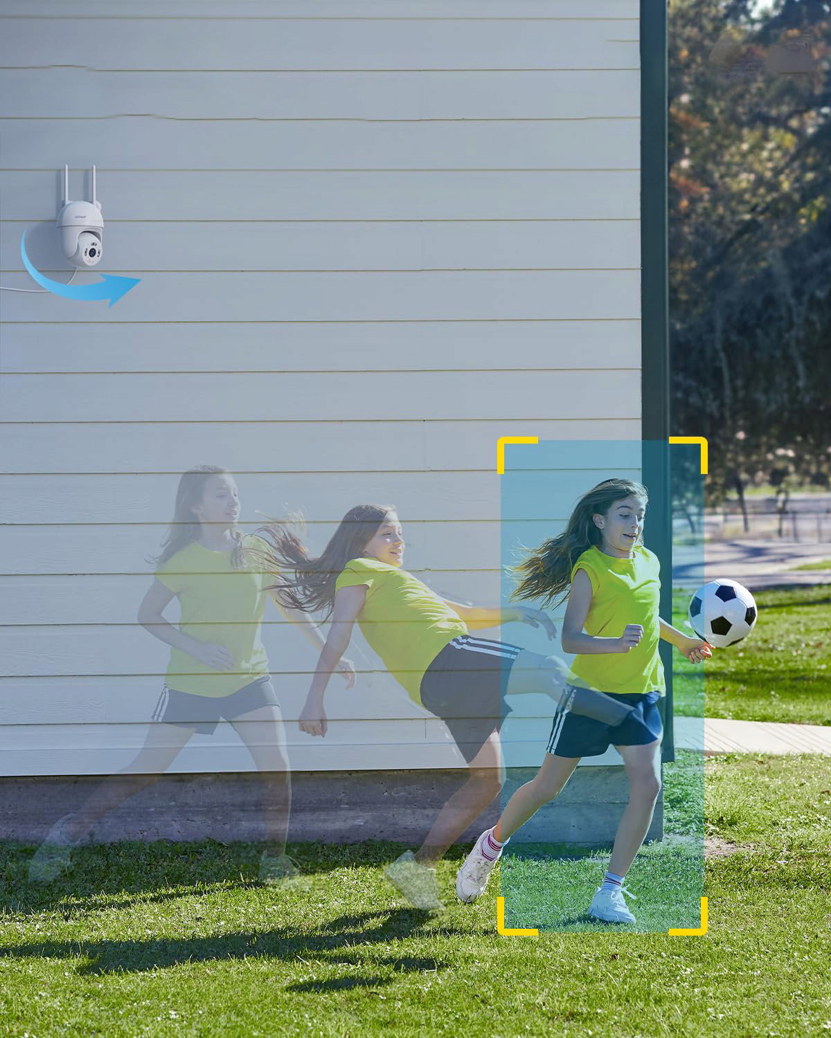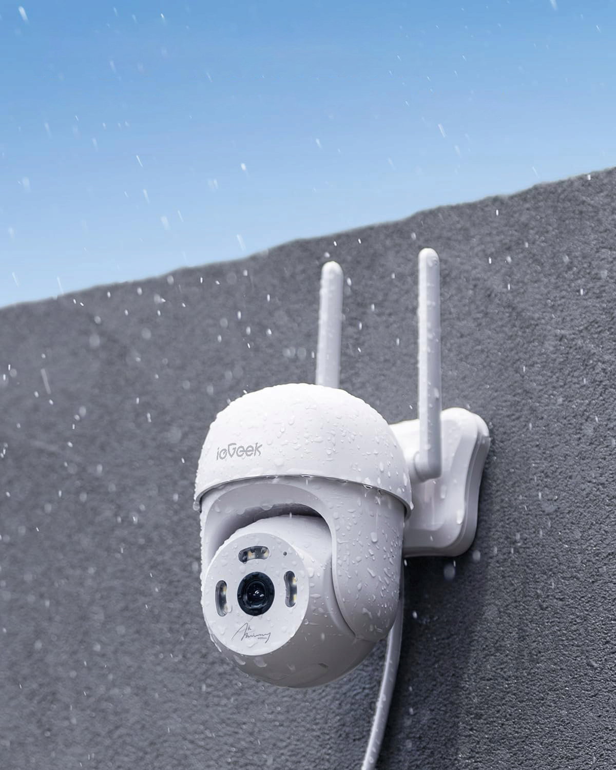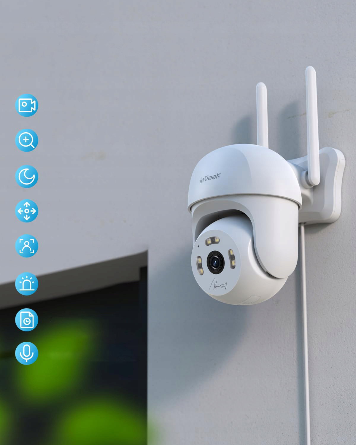 Zewnętrzna kamera ieGeek ma 355° poziomy i 90° pionowy PTZ i zapewnia 360° widok dookoła bez martwych punktów. Wyposażona w wiele metod alarmowania i wykrywania, takich jak alarm dźwiękowy, alarm świetlny, wykrywanie twarzy, wykrywanie dźwięku, śledzenie ruchu (opcjonalnie) itp. oferuje kamerę monitorującą z wieloma opcjami i wszechstronną widocznością.