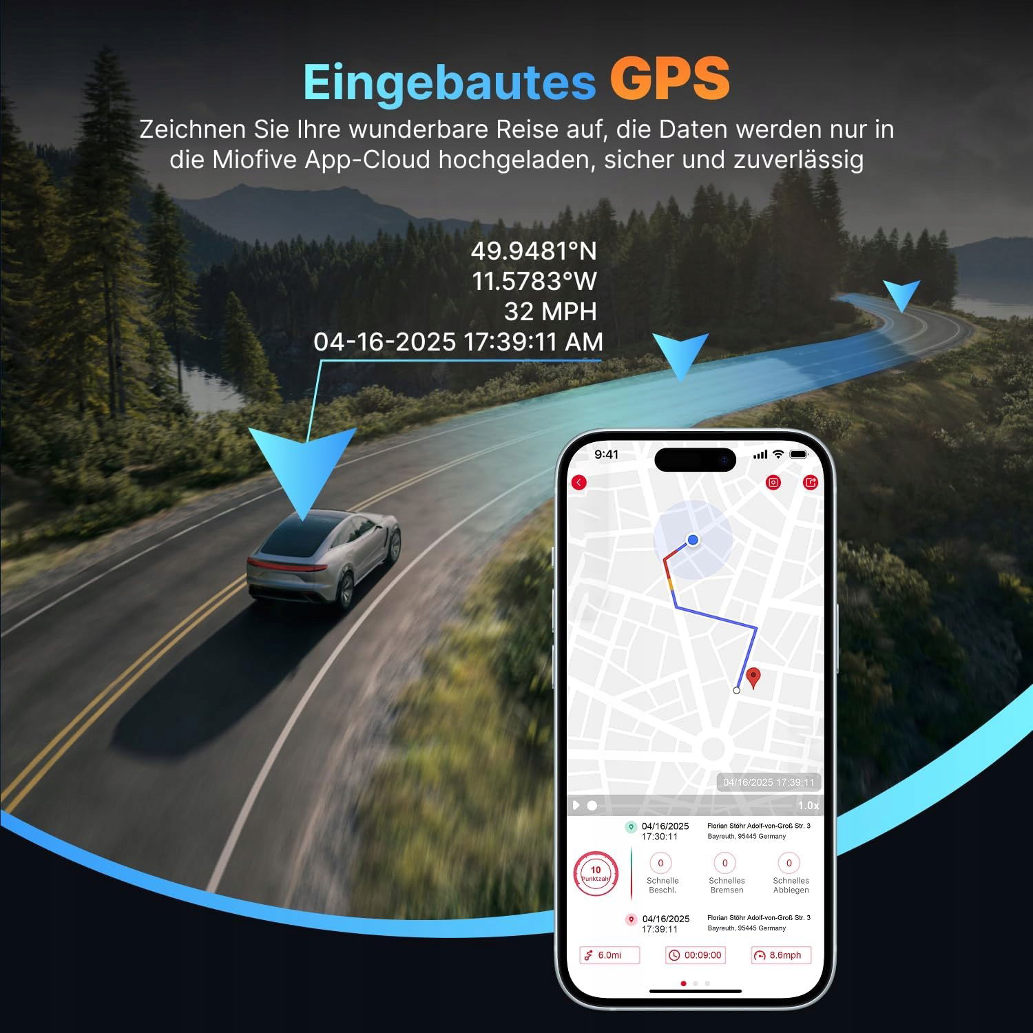 Miofive oferuje zaawansowaną kamerę na deskę rozdzielczą, która rejestruje w jakości 4K + 2K. Dzięki urządzeniu zapewnisz sobie bezpieczeństwo i spokój na drodze. Wbudowany GPS i WiFi umożliwiają śledzenie trasy i łatwe przesyłanie danych.