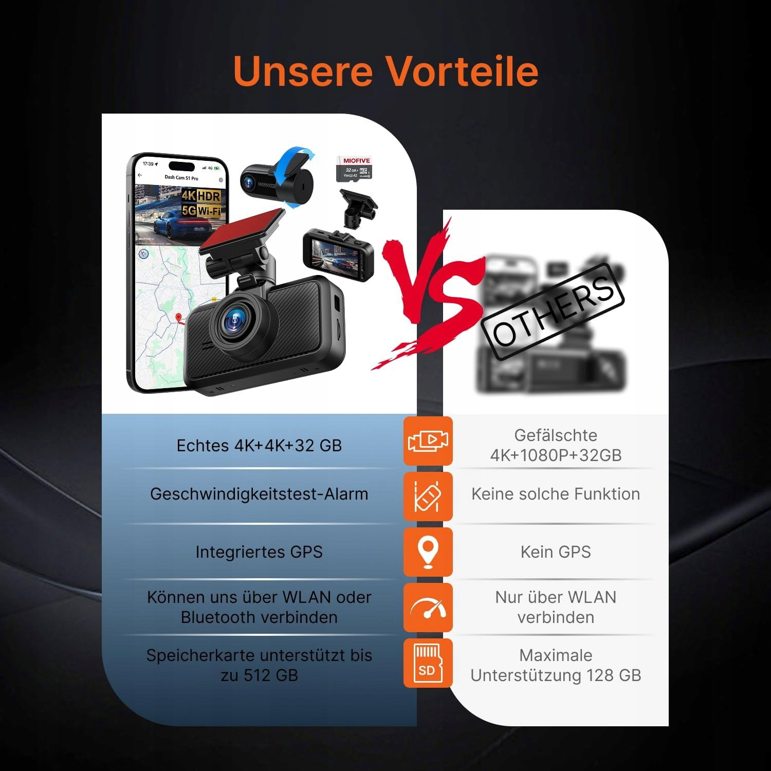 Kamera Miofive 4K 2K przednia tylna 3-calowy wyświetlacz IPS GPS WiFi