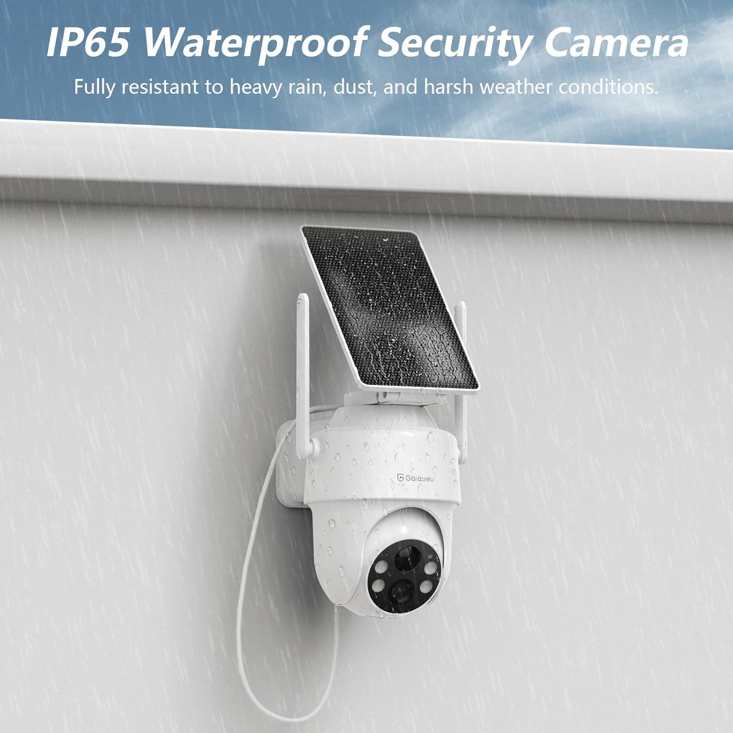 - Wodoszczelność IP 65 i w 100% bezprzewodowa: ta zewnętrzna kamera monitorująca jest wyposażona w dwa akumulatory wielokrotnego ładowania, może być stale zasilana przez dołączony panel słoneczny. Dzięki temu można ją zamontować w dowolnym miejscu, nawet bez gniazdka. Bardzo praktyczna i oszczędna. Dzięki klasie ochrony IP65 korzystanie z kamery w deszczowe i śnieżne dni nie stanowi problemu