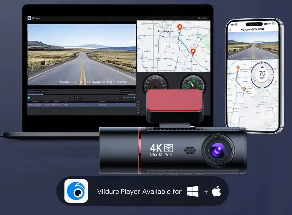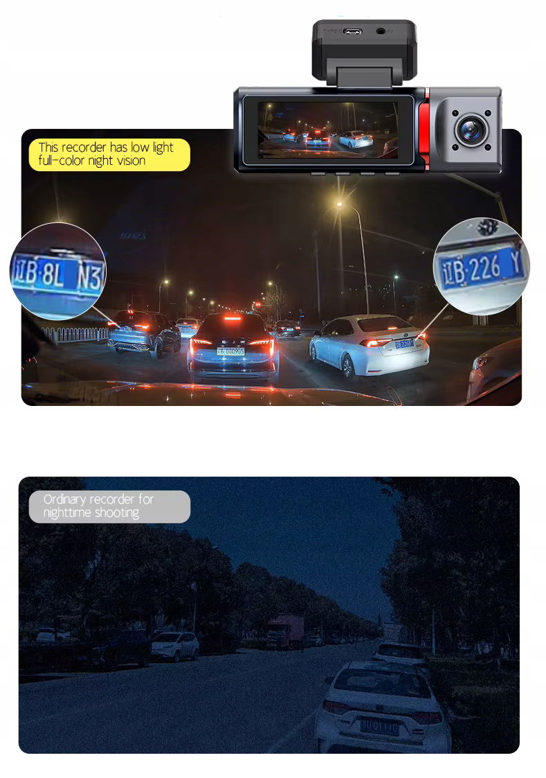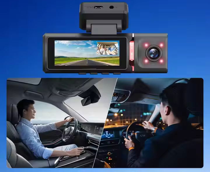 Kamera Samochodowa 3 w 1 HD 4K – Przód, Tył i Wnętrze, GPS, Wi-Fi, Tryb Nocny