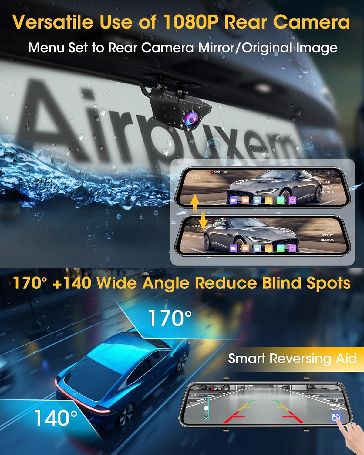 Zwiększ bezpieczeństwo i komfort parkowania dzięki zaawansowanemu lusterku z kamerą cofania 4K! To innowacyjne urządzenie łączy funkcje lusterka wstecznego z rejestratorem jazdy o ultra wysokiej rozdzielczości i kamerą cofania, oferując pełny podgląd sytuacji za i przed pojazdem.