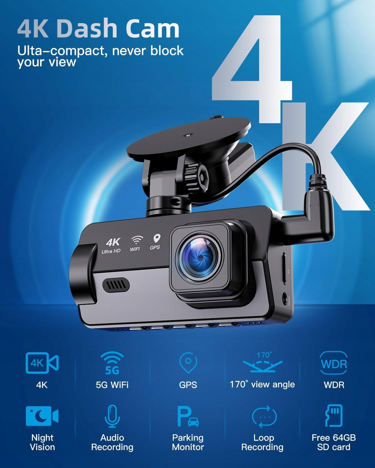 Kamera samochodowa 4K z przodu i z tyłu rejestruje wideo w rozdzielczości do Ultra HD 4K (30 kl./s) + FHD 1080P (30 kl./s), kamera samochodowa nie tylko pomaga odczytać znaki drogowe i numer pojazdu tablice rejestracyjne i inne kluczowe szczegóły, które zapewniają krystalicznie czystą jakość wideo do odczytu tablic rejestracyjnych w dzień i w nocy. Szerokie kąty 170° z przodu i 140° z tyłu redukują martwe pole, idealne do codziennej jazdy i nieoczekiwanych wypadków.